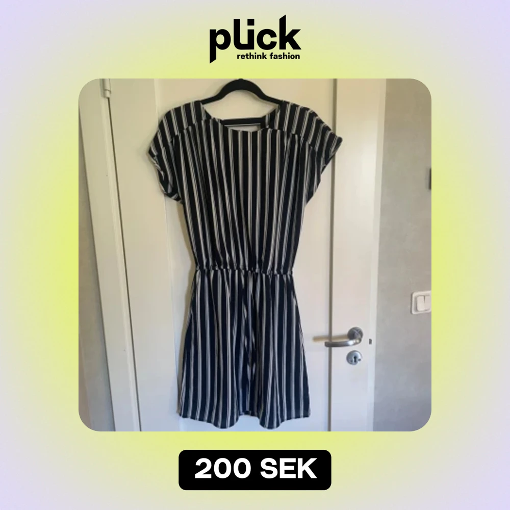 Säljer en superfin svart och vit randig klänning. Den är kortärmad och har en elastisk midja som ger en snygg passform. Klänningen är perfekt för både vardag och fest. Den är endast använd en gång, nyskick!
