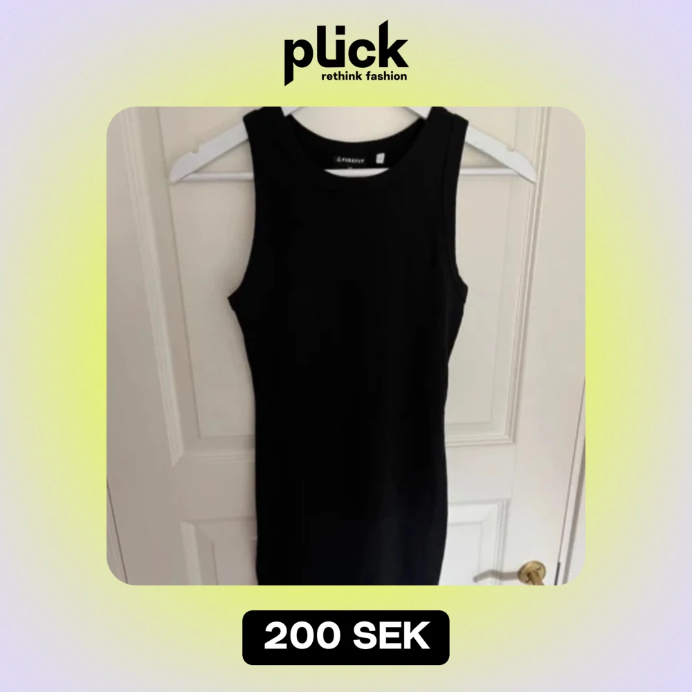 Säljer en stilren och enkel svart ärmlös klänning från Firefly. Perfekt för både vardag och fest. Klänningen har en tight passform och är gjord i ett mjukt och bekvämt material.