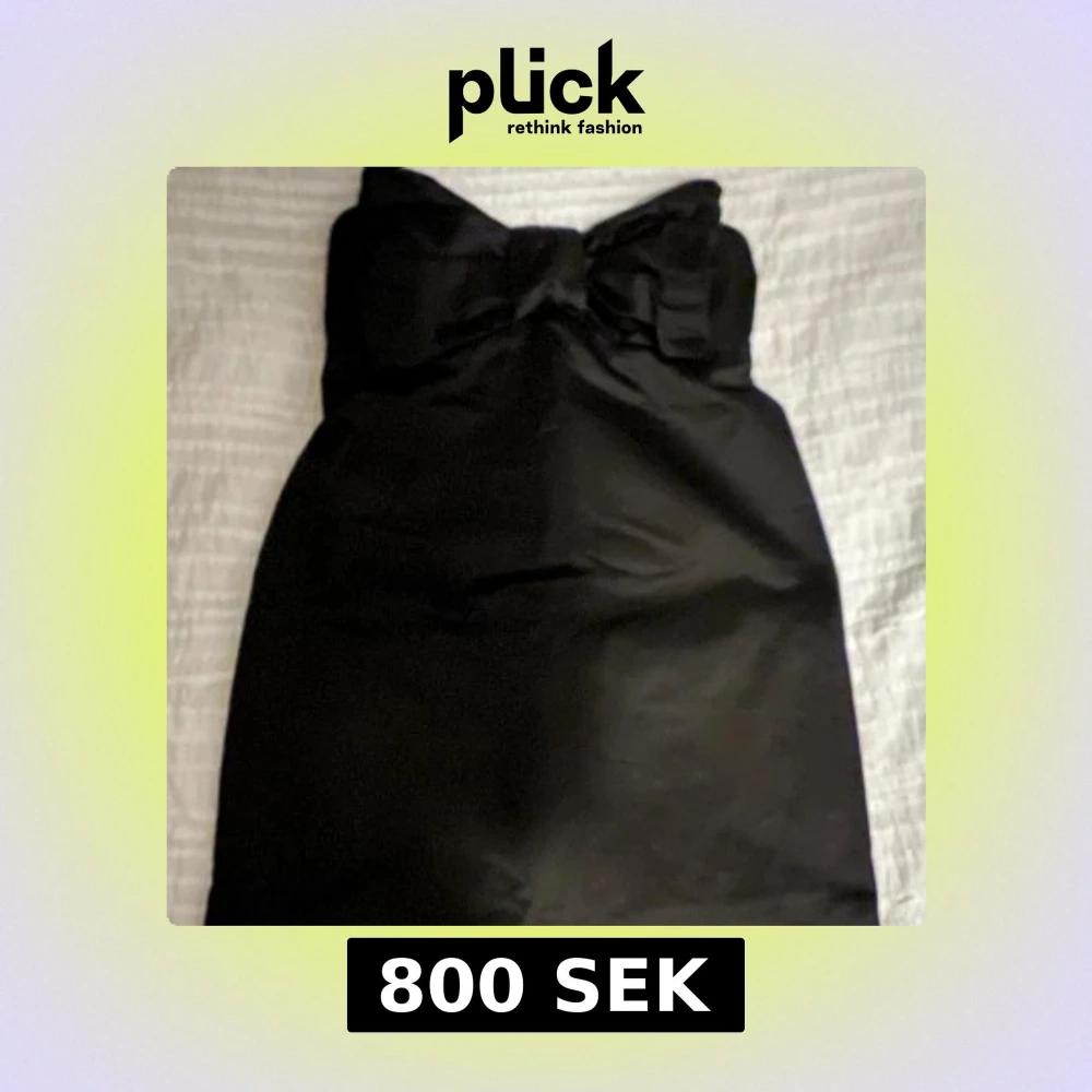 Elegant svart axelbandslös klänning med en stilren design. Perfekt för festliga tillfällen. Klänningen har en fin rosettdetalj framtill som ger en extra touch av elegans.