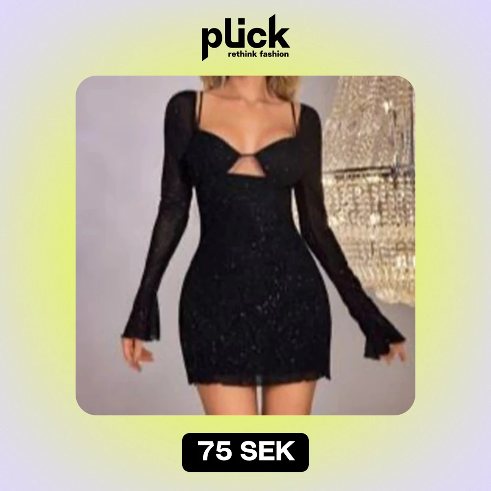 Snygg svart glittrig klänning med långärmade detaljer och en liten öppning framtill. Perfekt för nyår eller halloween 🎃kan fixa bättre bilder, säg till isåfall 🩷från shein