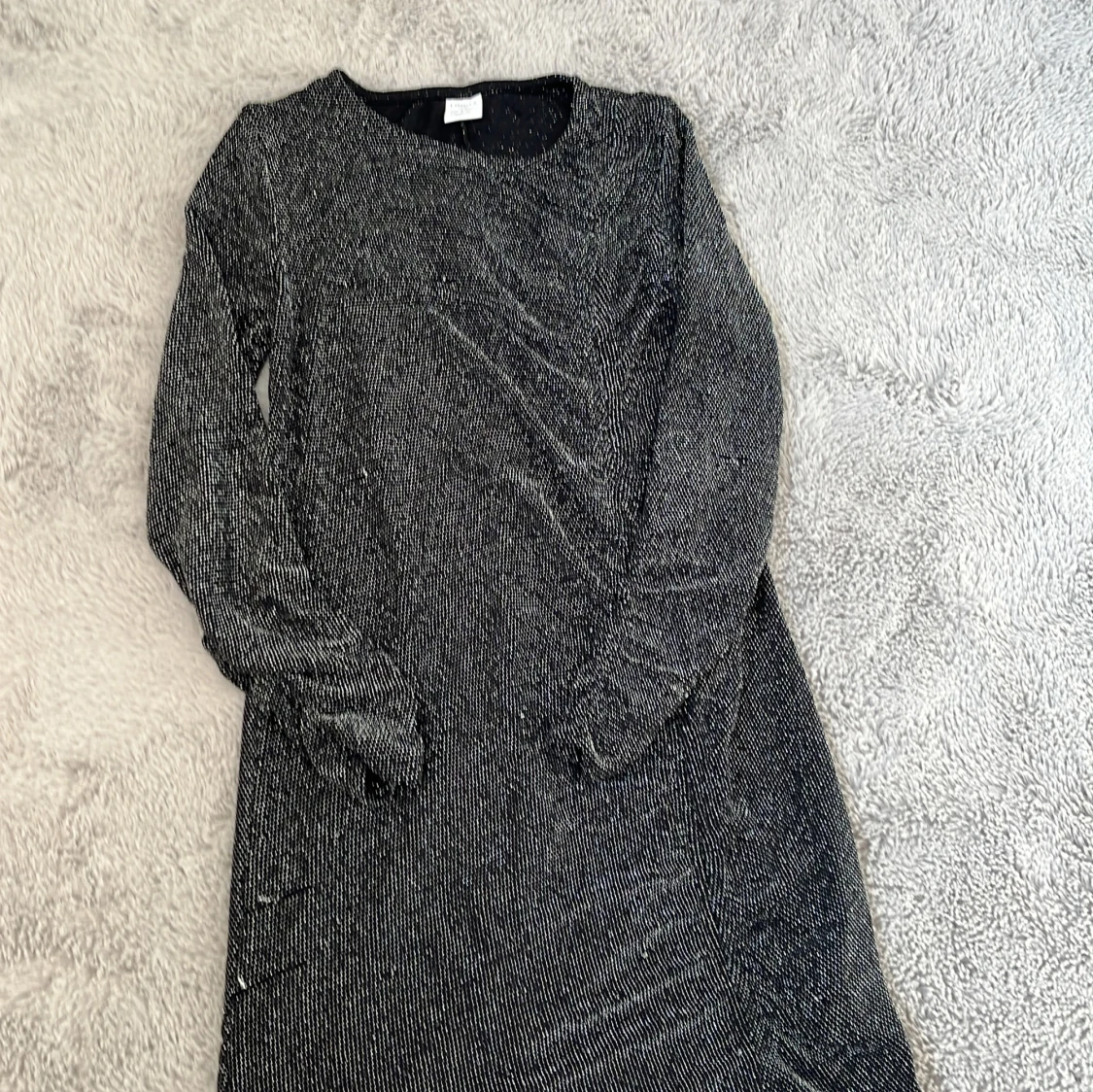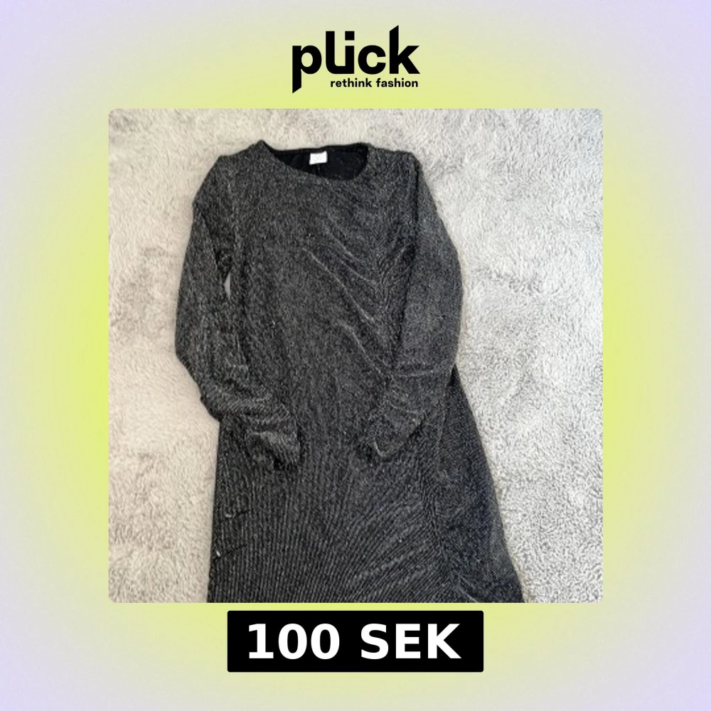 Snygg svart klänning från Lindex med glittriga detaljer. Klänningen har långa ärmar och en elegant passform. Perfekt för speciella tillfällen när du vill glänsa lite extra. ✨