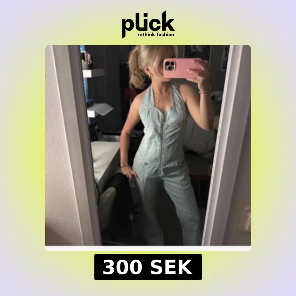 Snygg ljusblå ärmlös jumpsuit med dragkedja framtill. Perfekt för en avslappnad och stilren look. Passar bra till både vardag och festliga tillfällen. Använd fåtal gånger i bra skick