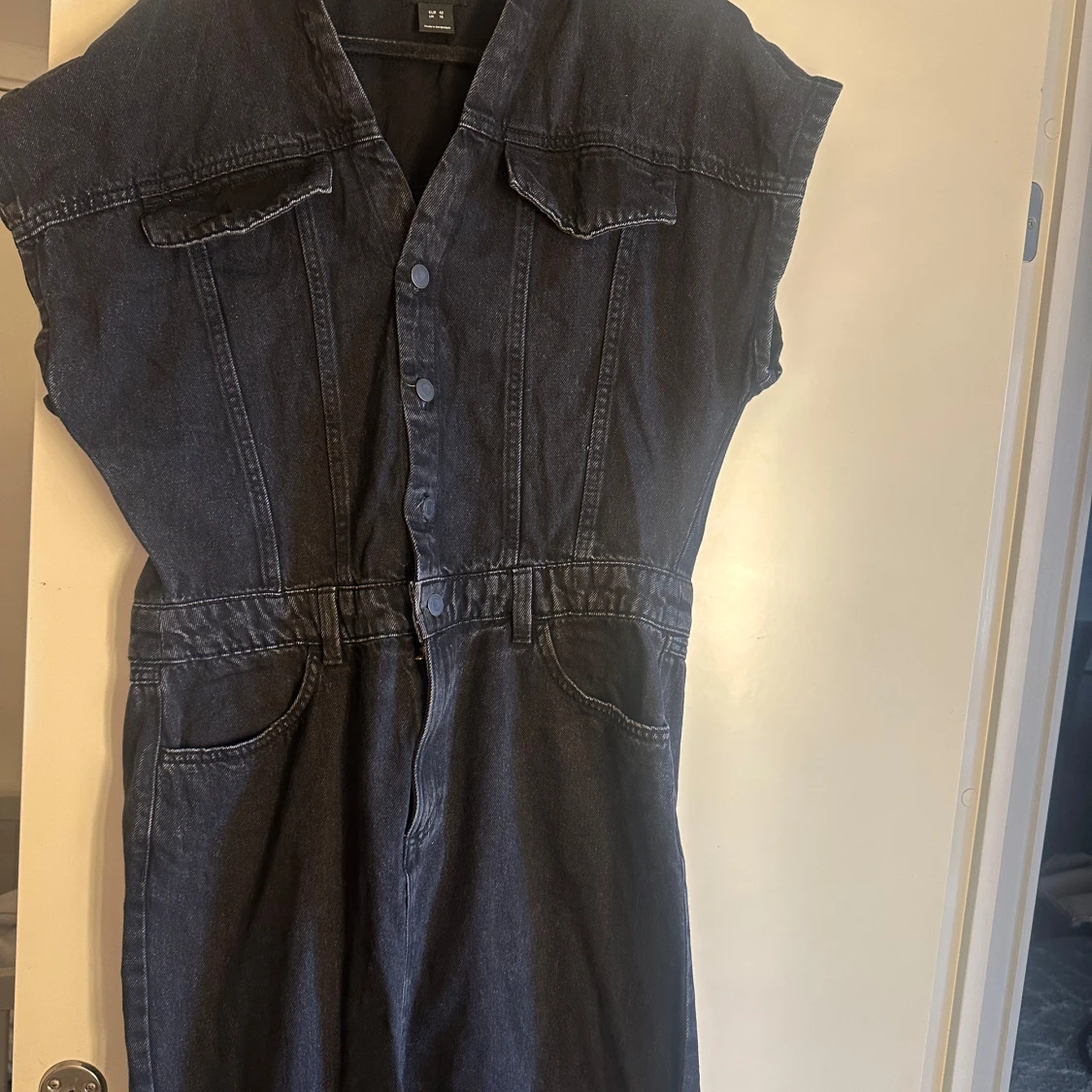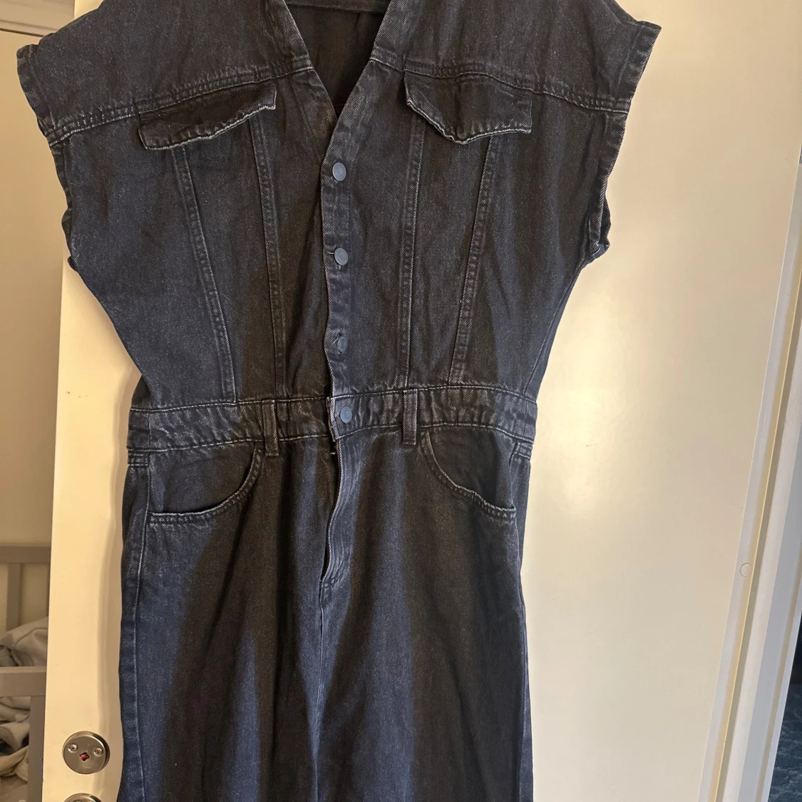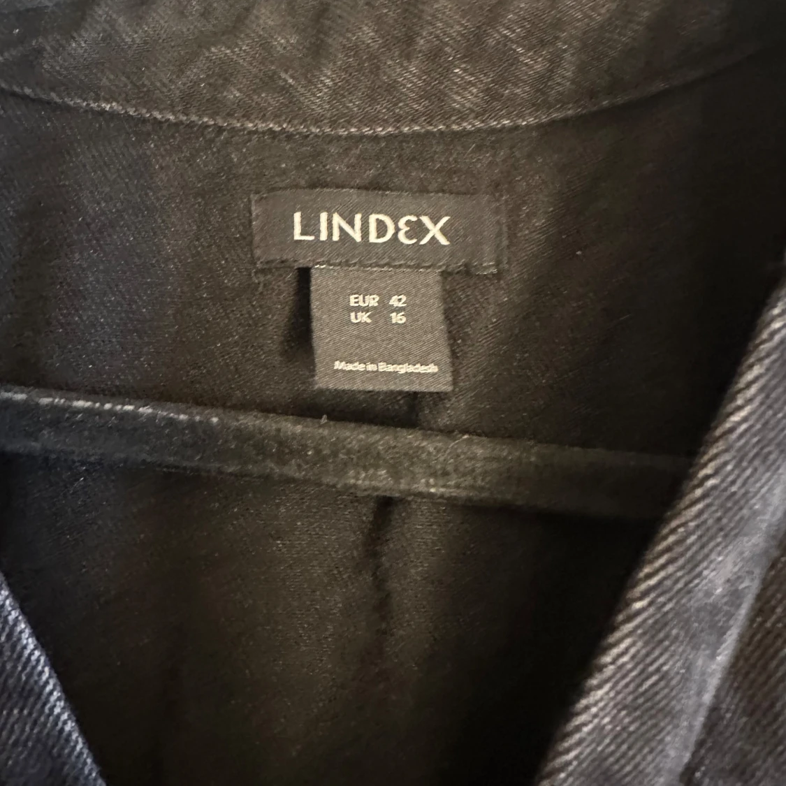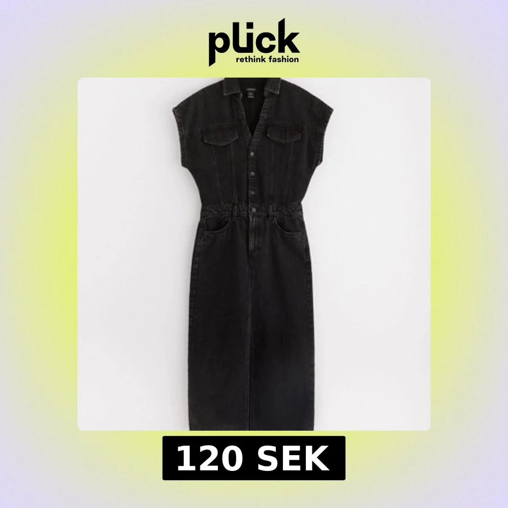 Cool svart jeansklänning från Lindex i storlek 42. Klänningen har korta ärmar, knappar framtill, bröstfickor med lock och markerad midja. Perfekt för dig som gillar en avslappnad men snygg look. Materialet är klassiskt denim.