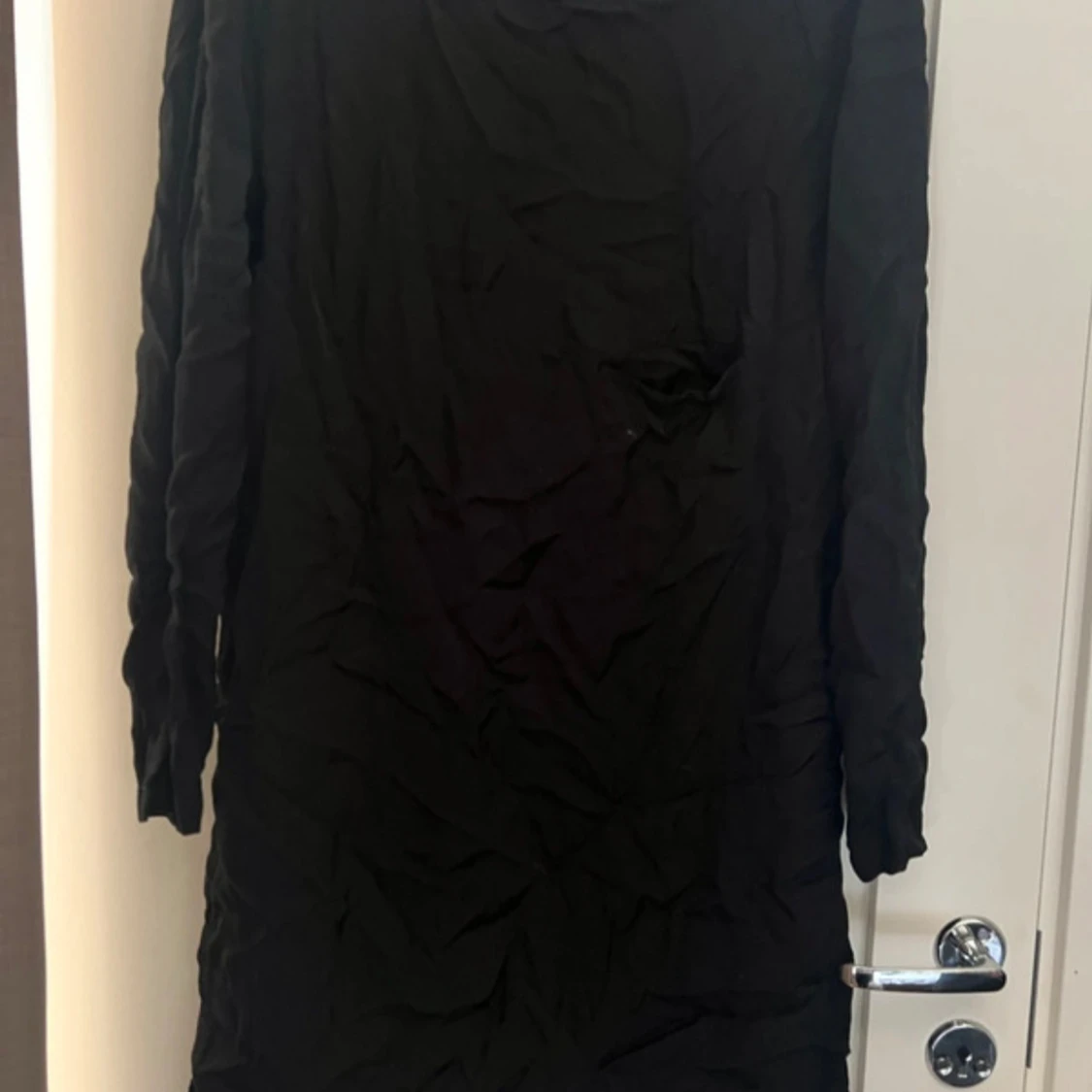 Elegant svart klänning från Rabens Saloner i storlek S. Klänningen har långa ärmar och en klassisk design med en detalj ficka på bröstet
