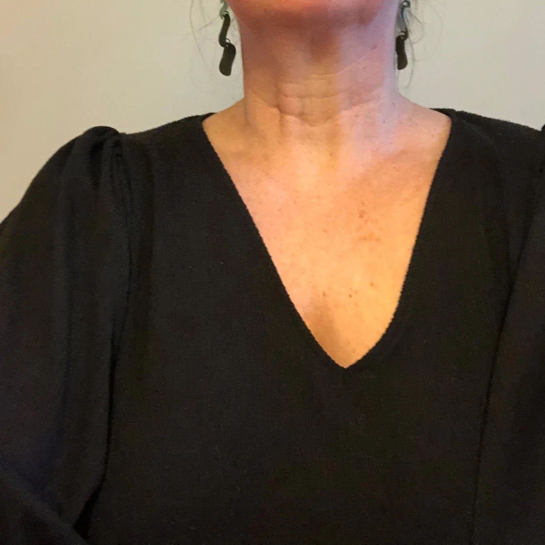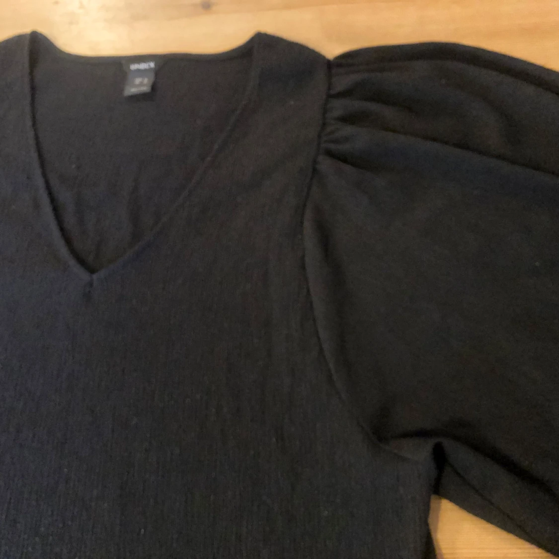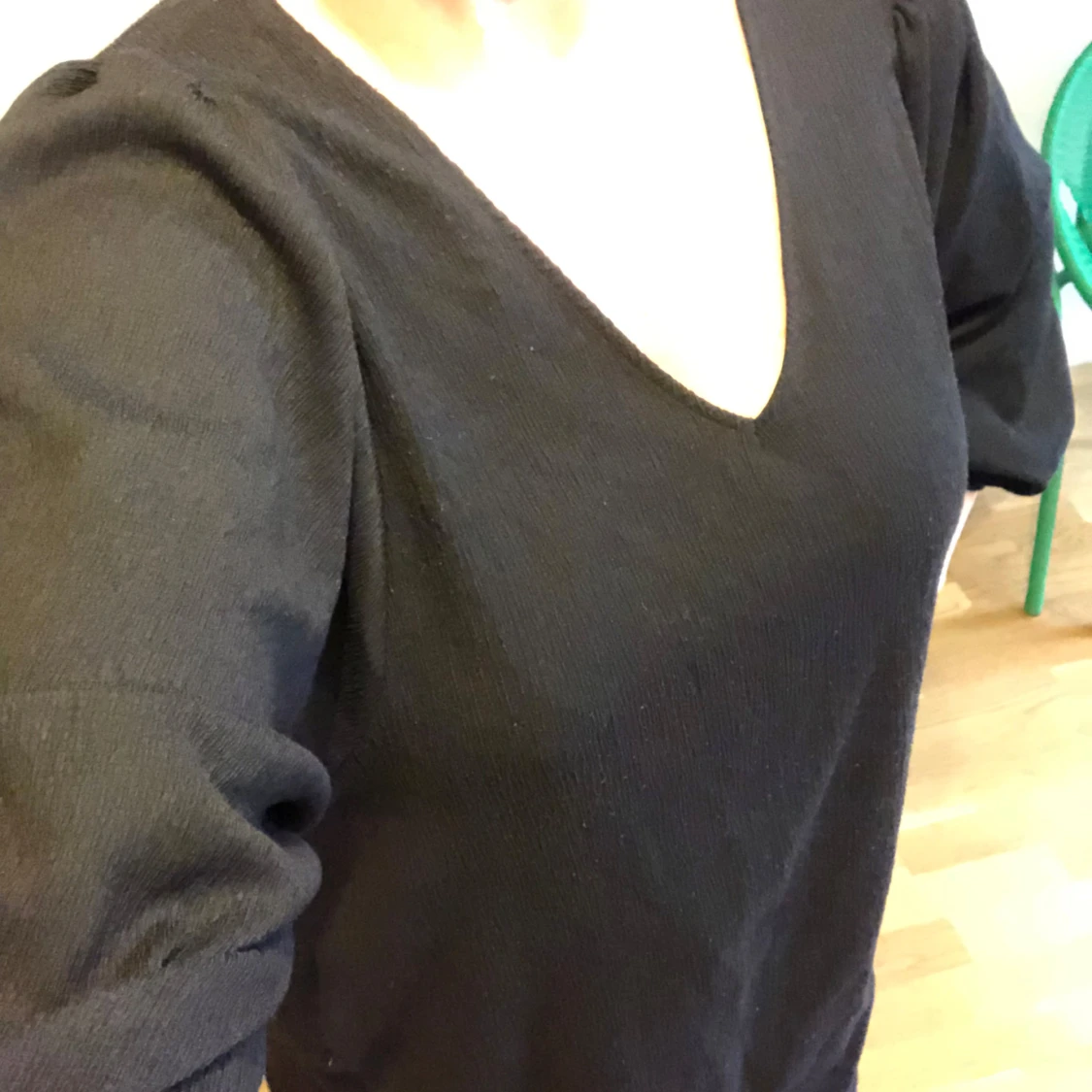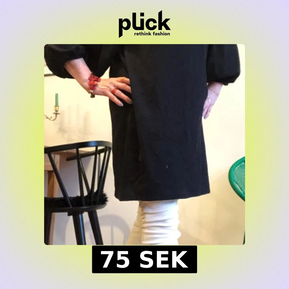 Svart kortklänning från Lindex med v-ringning och puffiga långärmar. Klänningen har en enkel, rak passform och är tillverkad i ett mjukt tyg med lite vågstruktur. . Perfekt för dig som gillar stilren och tidlös design. 95% polyester 5% elastan.
