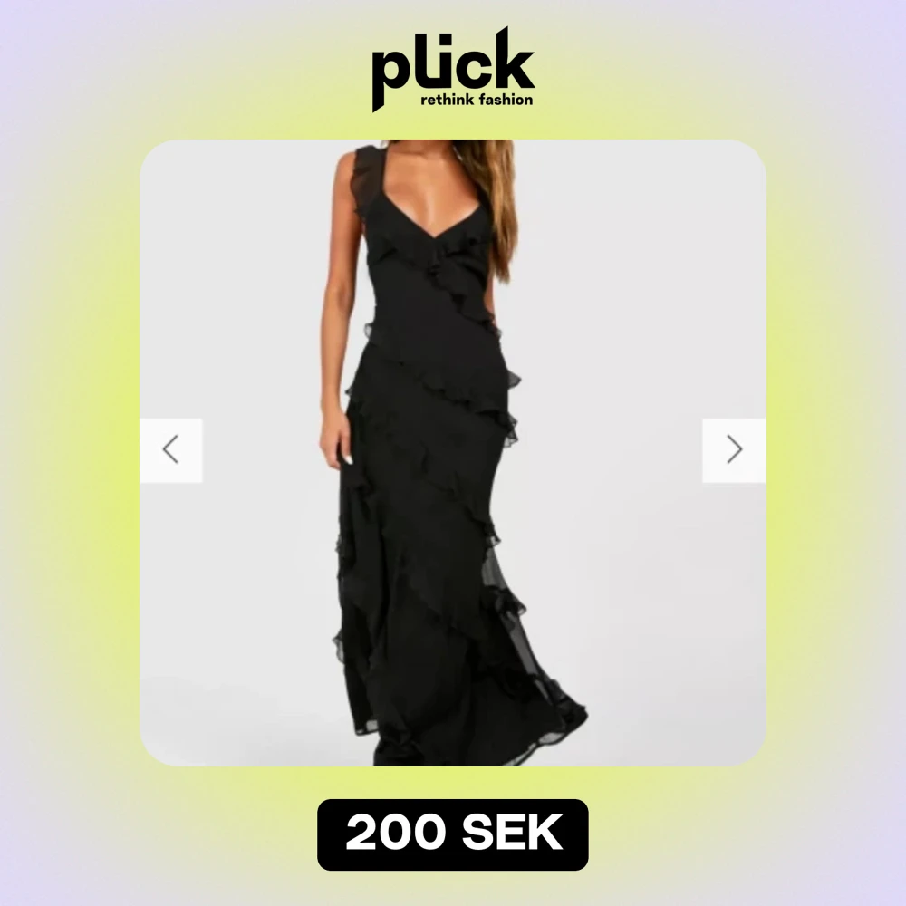 Superfin svart långklänning med volanger! Aldrig använd och med prislapp kvar. Liten defekt på sidan av klänningen (bild 3) men inget som man tänker på! Säljer pga storleken inte passar mig!💕🫶🏼