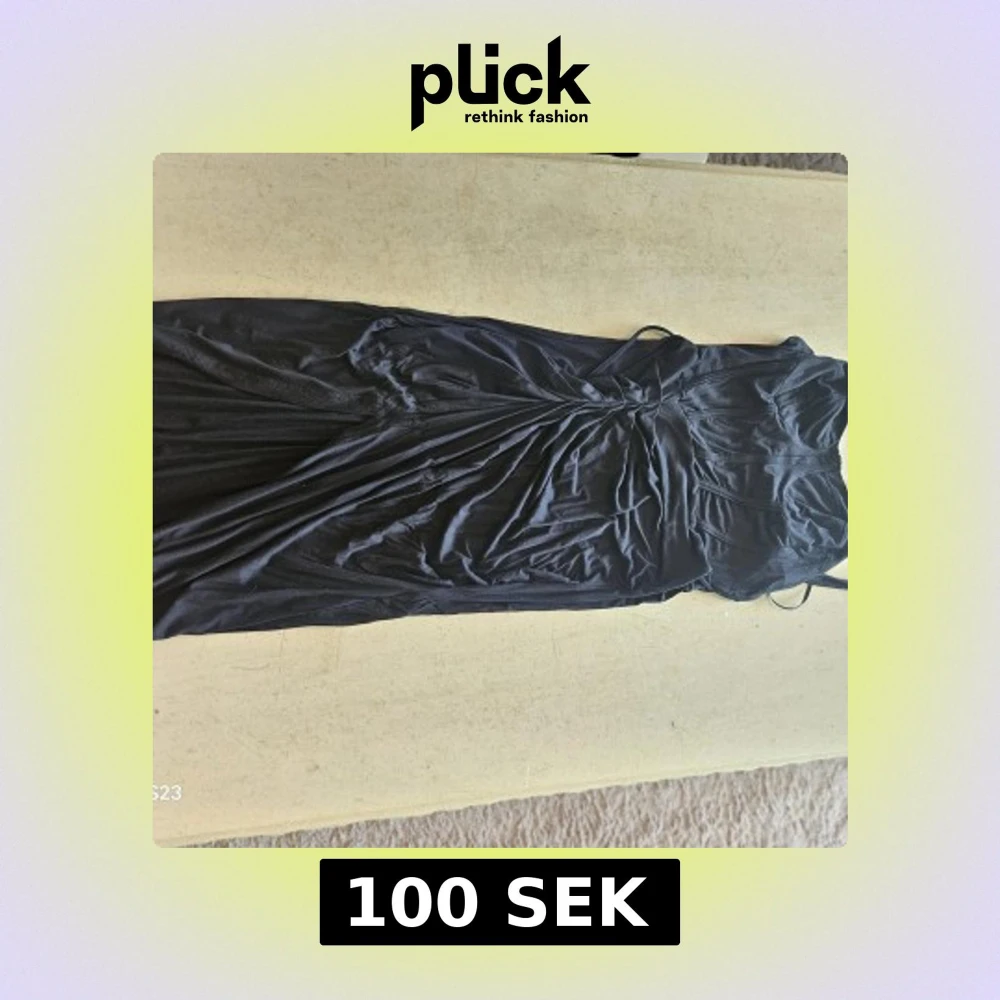 Supersnygg svart långklänning från SHEIN MOD med smala axelband och draperad midja. Klänningen har figurnära passform och är tillverkad i mjuk viskosblandning med stretch. Perfekt för dig som vill ha en elegant och stilren look.