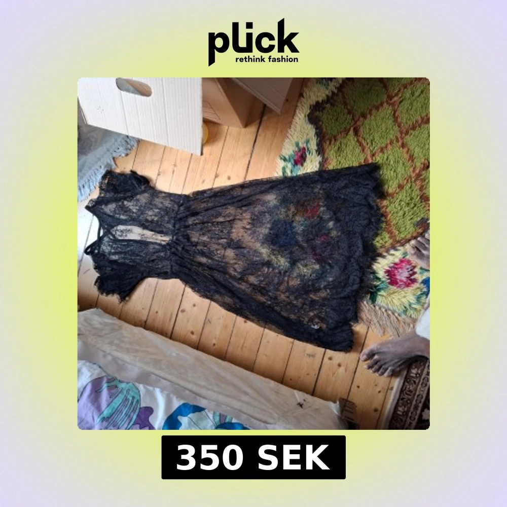 Säljer en svart långklänning i transparent spets med v-ringning och korta ärmar. Klänningen har en romantisk känsla och är perfekt för dig som vill sticka ut. Passar till många olika tillfällen och är riktigt snygg att styla med boots eller klackar.