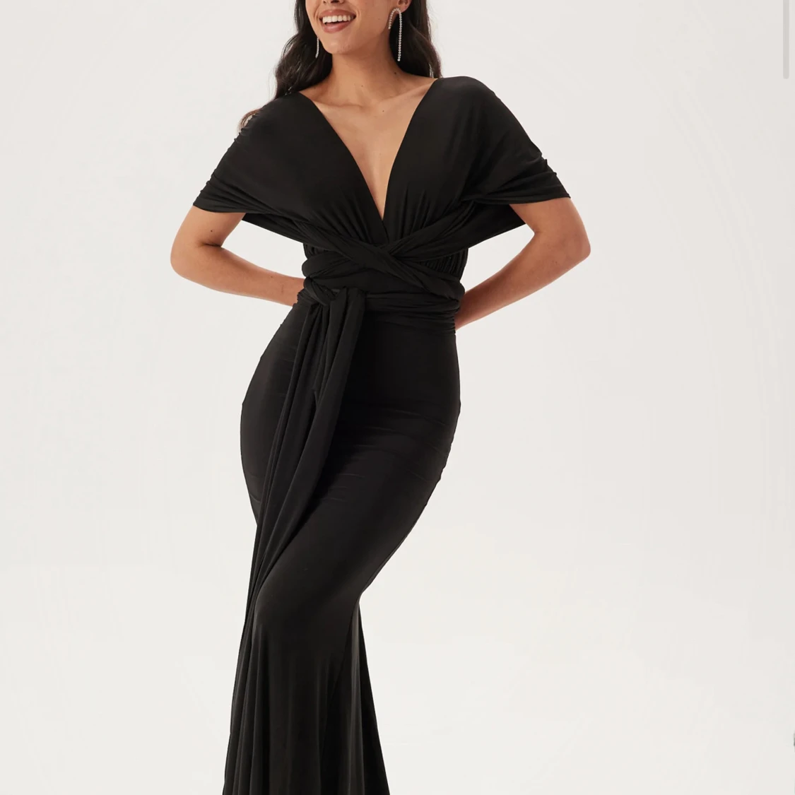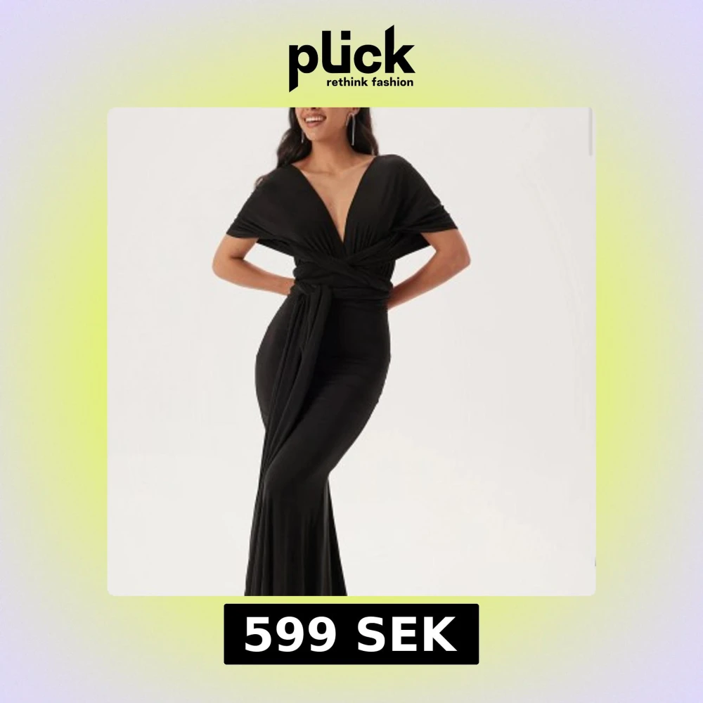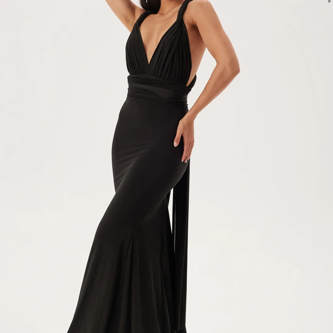 En super hacker svart lång klänning som man kan knyta på massor av olika sätt!! Endast använt 1 gång på ett bröllop!! Den är i ett extremt mjukt och skönt material! I super bra skick! Jag köpte den för 1199 kr, säljer för nästan halva priset.