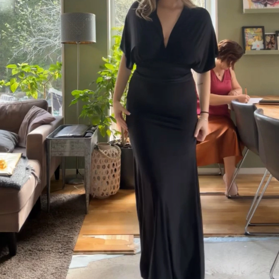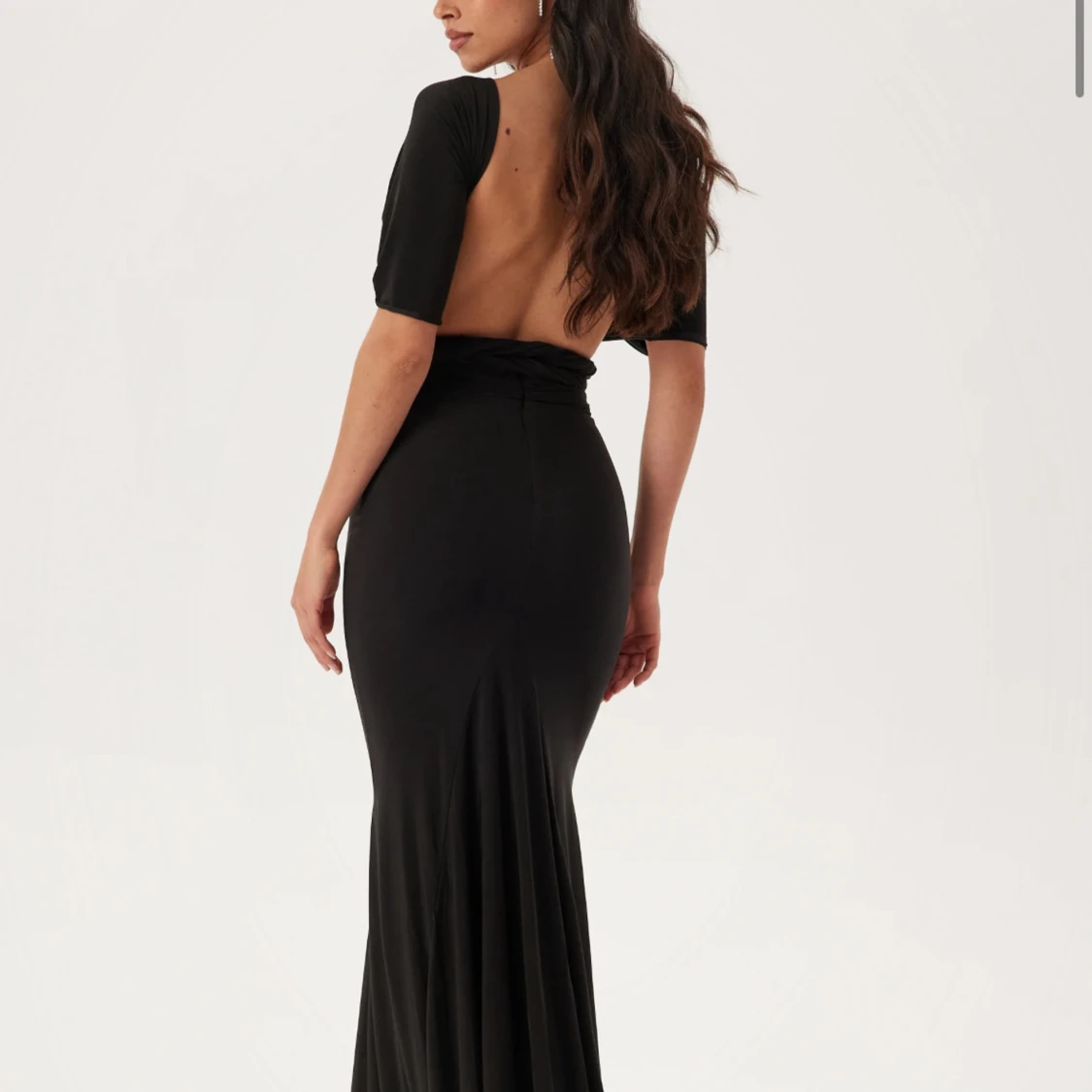 Svart långklänning med öppen rygg