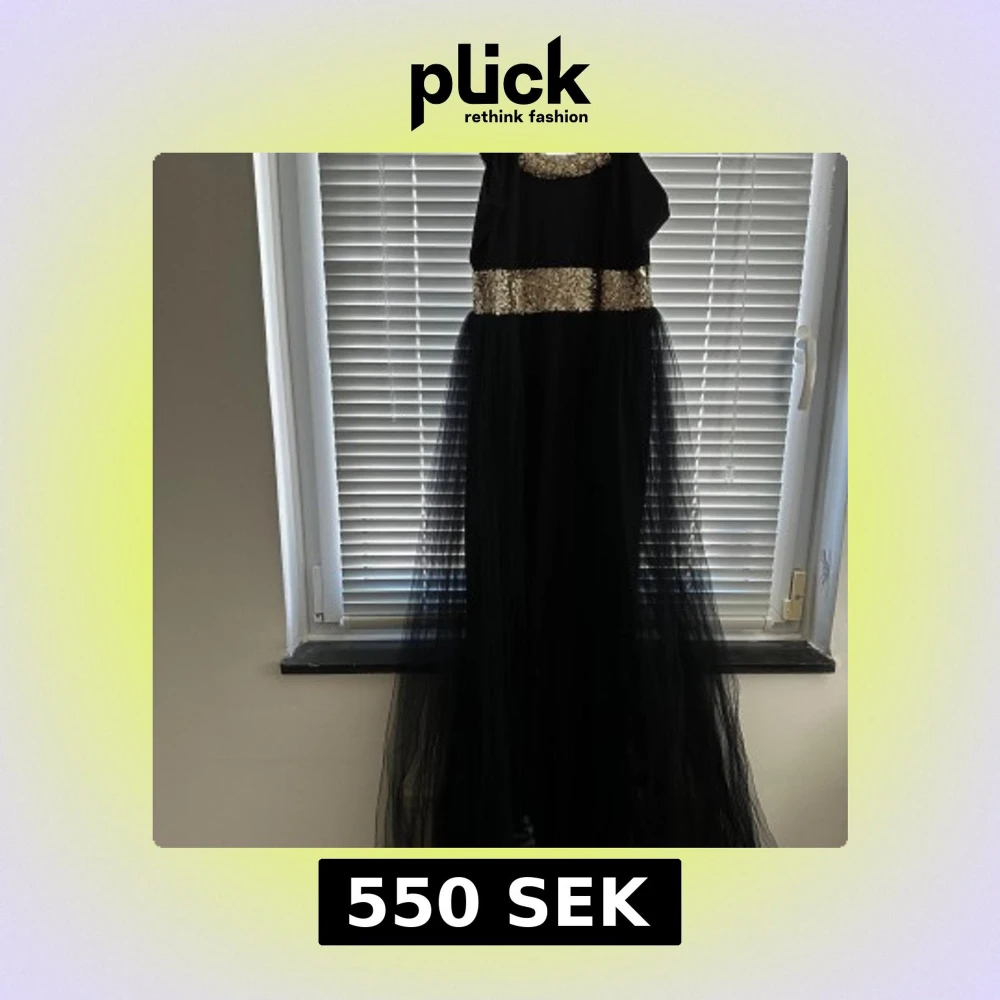 Supersnygg svart långklänning från Sisters Point med guldiga paljettdetaljer i midjan och över axlarna. Klänningen har ett lager av tunn tyll som ger extra volym och en dragkedja i ryggen. Perfekt för dig som vill sticka ut med glitter och elegans.