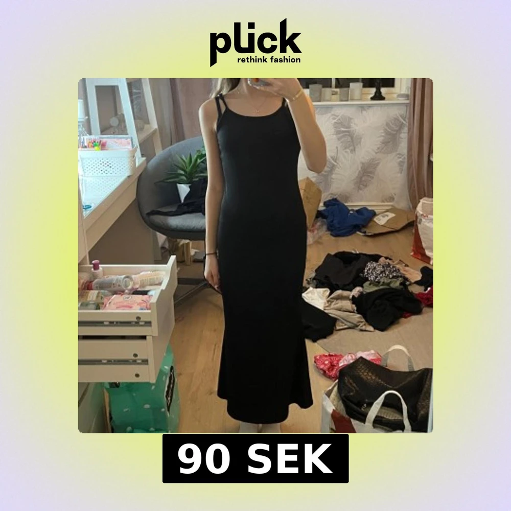 Elegant svart långklänning med smala axelband och figurnära passform. Perfekt för en stilren look. Passar perfekt nu till våren och sommaren! Den kommer från SHEIN och kostade 120 kr. Så fin och skön! Älskar den men jag säljer den då den har blivit lite kort.