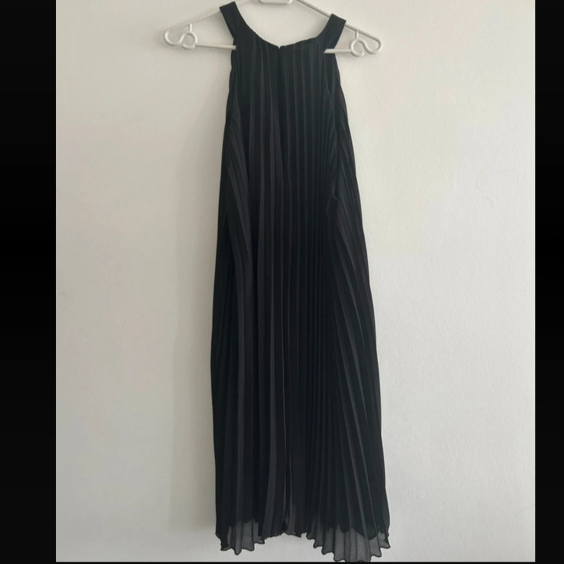 Snygg svart långklänning med plisserat tyg och ärmlös design. Klänningen har hög halsringning och ett luftigt fall som ger en cool och elegant look. Perfekt för dig som gillar stilrena och tidlösa plagg.