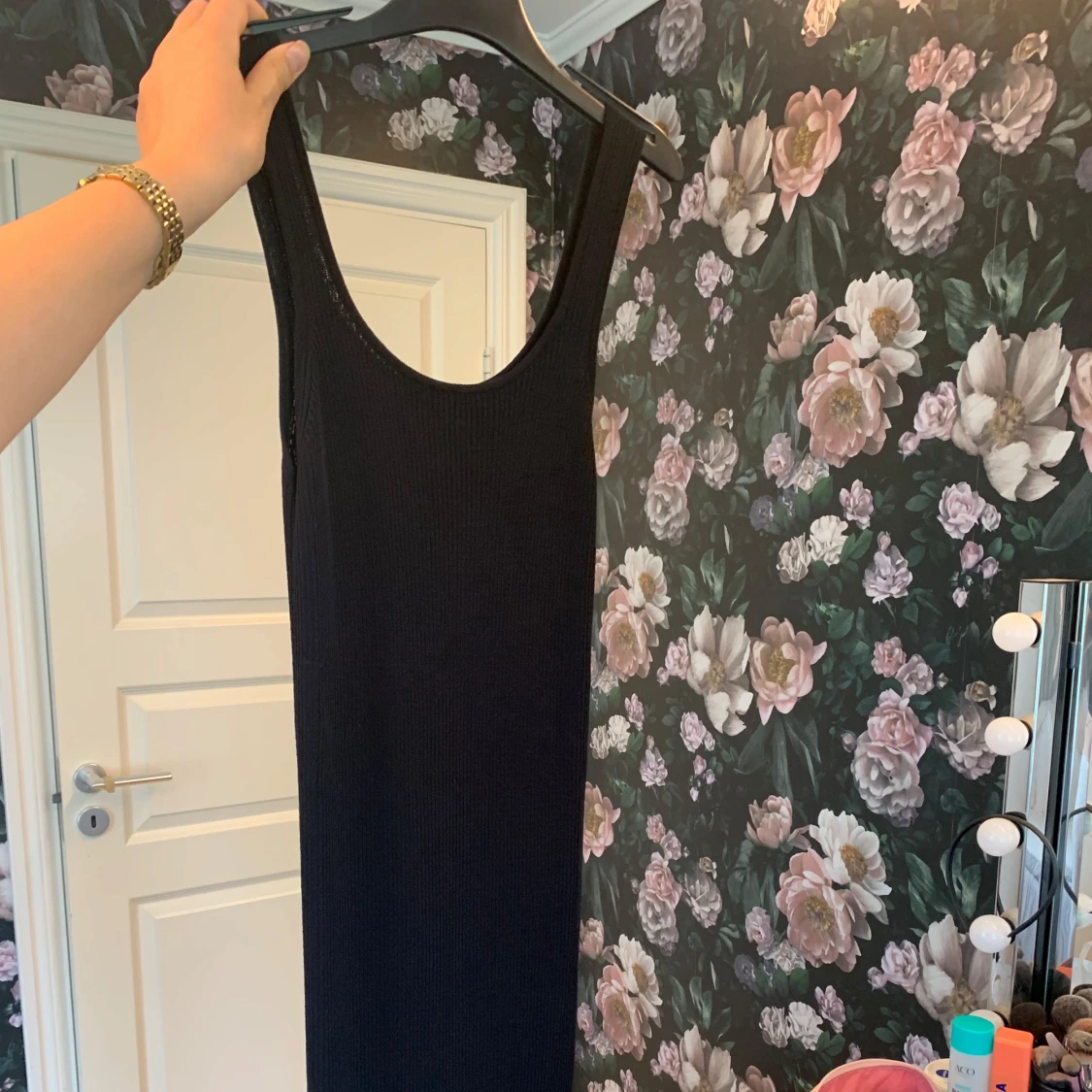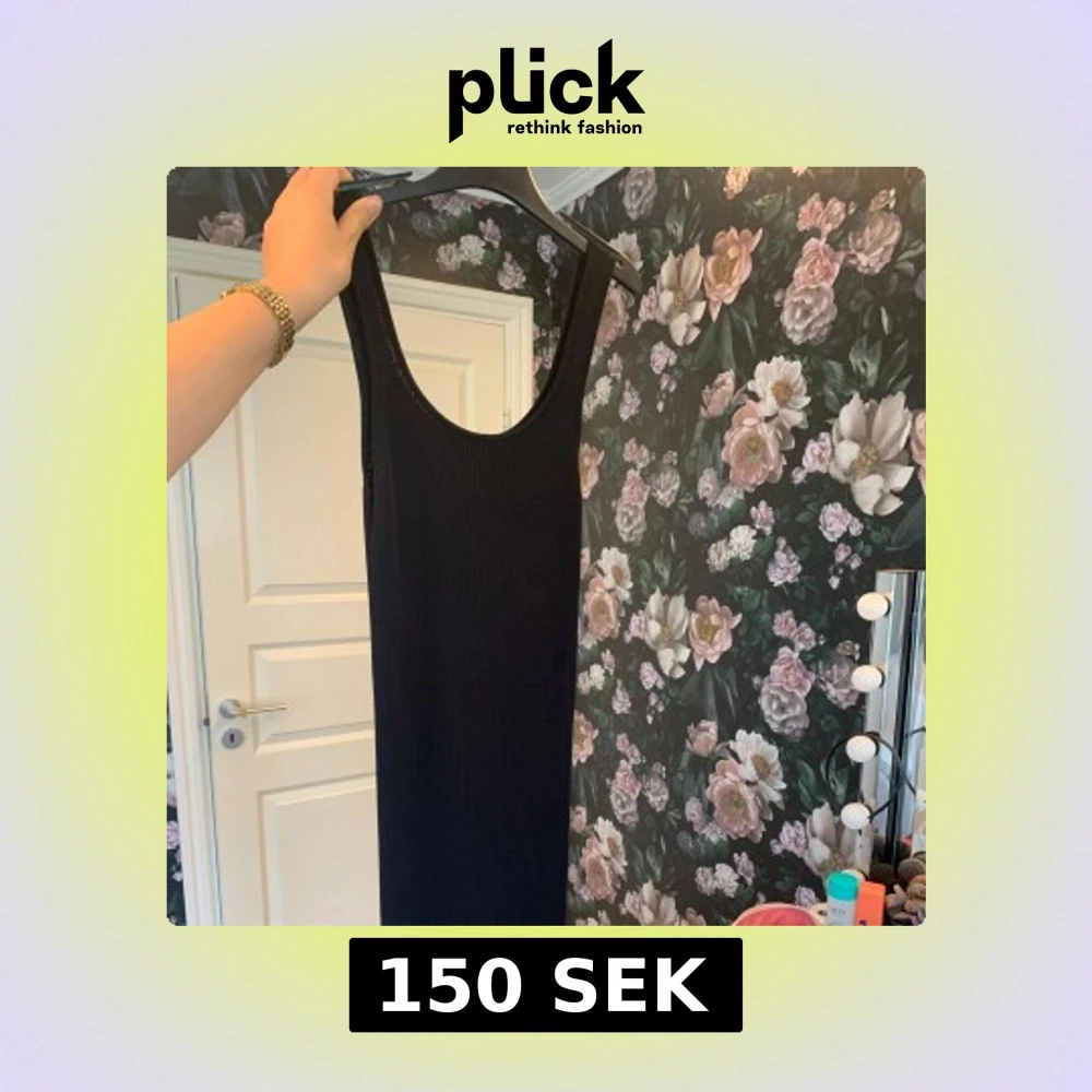 Svart ribbad långklänning från Lindex i storlek S. Klänningen är ärmlös med rundad urringning och har en tight passform som framhäver siluetten.