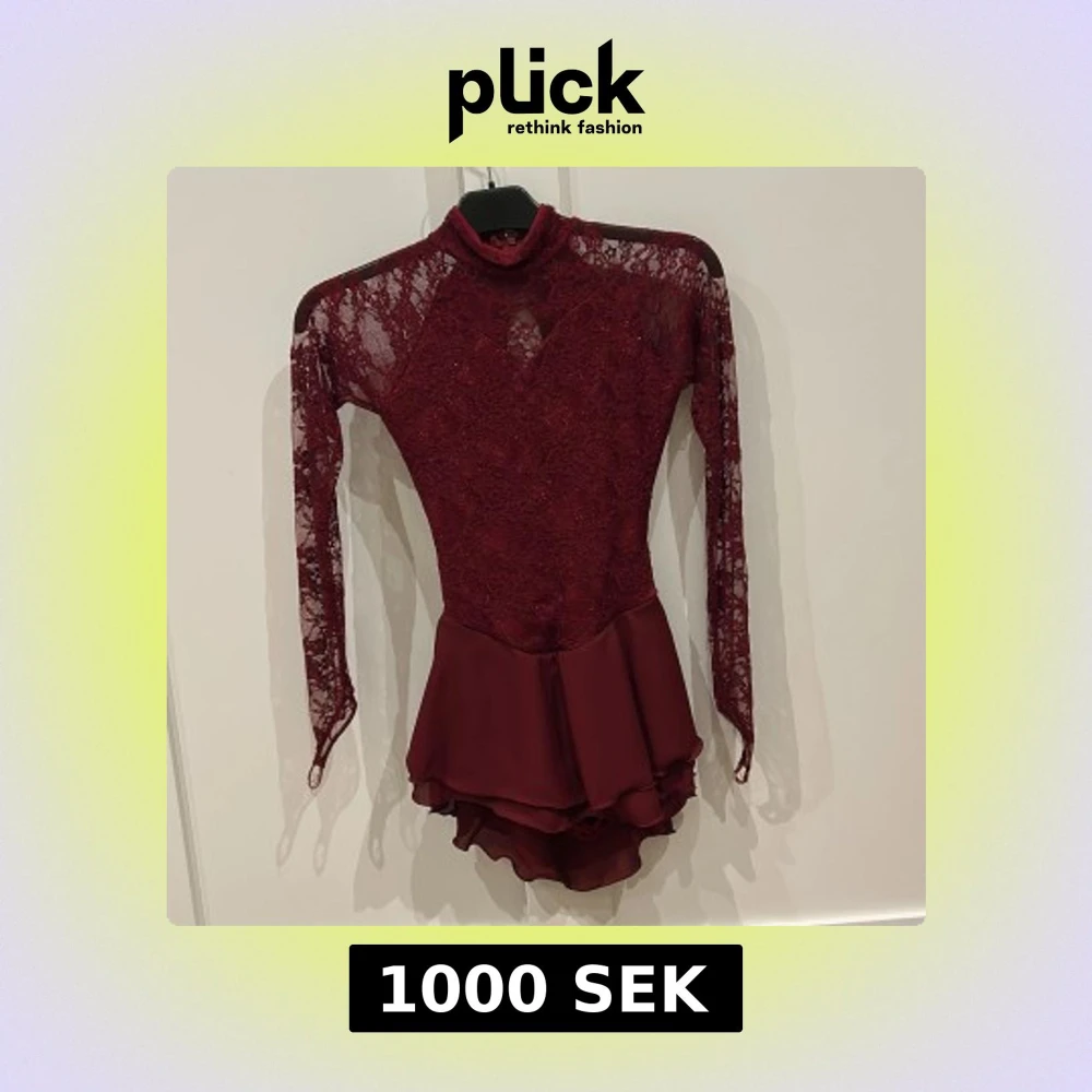 Vinröd konståkningsklännining med spetts och öppen rygg