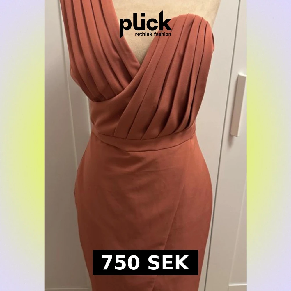 Snygg rostfärgad kortklänning från Lavish Alice med omlottdesign och plisserad v-ringad överdel. Klänningen har oneshoulder och figurnära passform, tillverkad i ett mjukt syntetmaterial. Dragkedja i ryggen för enkel påklädning. Perfekt för dig som gillar stilrena detaljer.