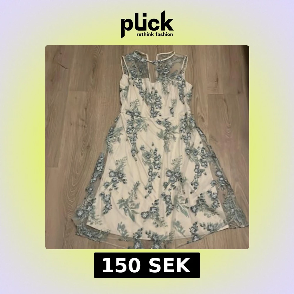 Elegant klänning från Phase Eight i en ljus färg med vackra blommiga broderier i blått och grönt. Klänningen har en ärmlös design och ett medföljande bälte som ger en fin siluett. Perfekt för speciella tillfällen.