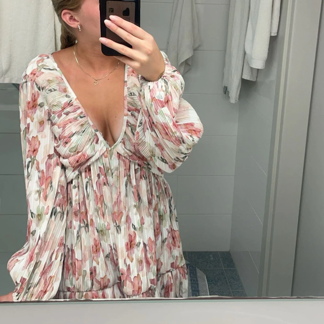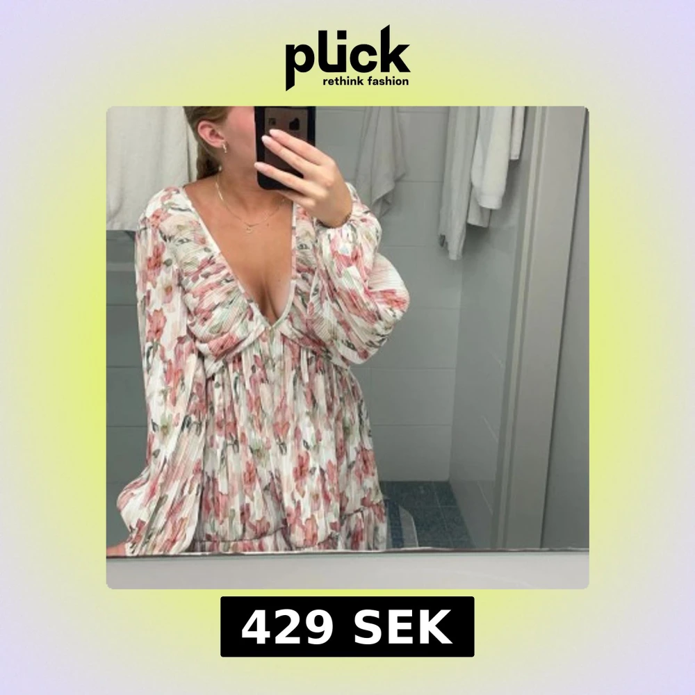 Superfin populär kortklänning med blommigt mönster i rosa, grönt och vitt från hm som är helt slutsåld. Djup v-ringning, långa puffiga ärmar och plisserat tyg ger en luftig och romantisk vibe. Perfekt för vår och sommar, lätt att styla med sneakers eller sandaler. Säljer då den inte kommer till användning 💓