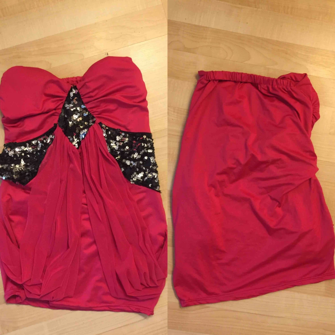 Kort cerise festklänning med paljettdetaljer. Endast använd 1 gång.