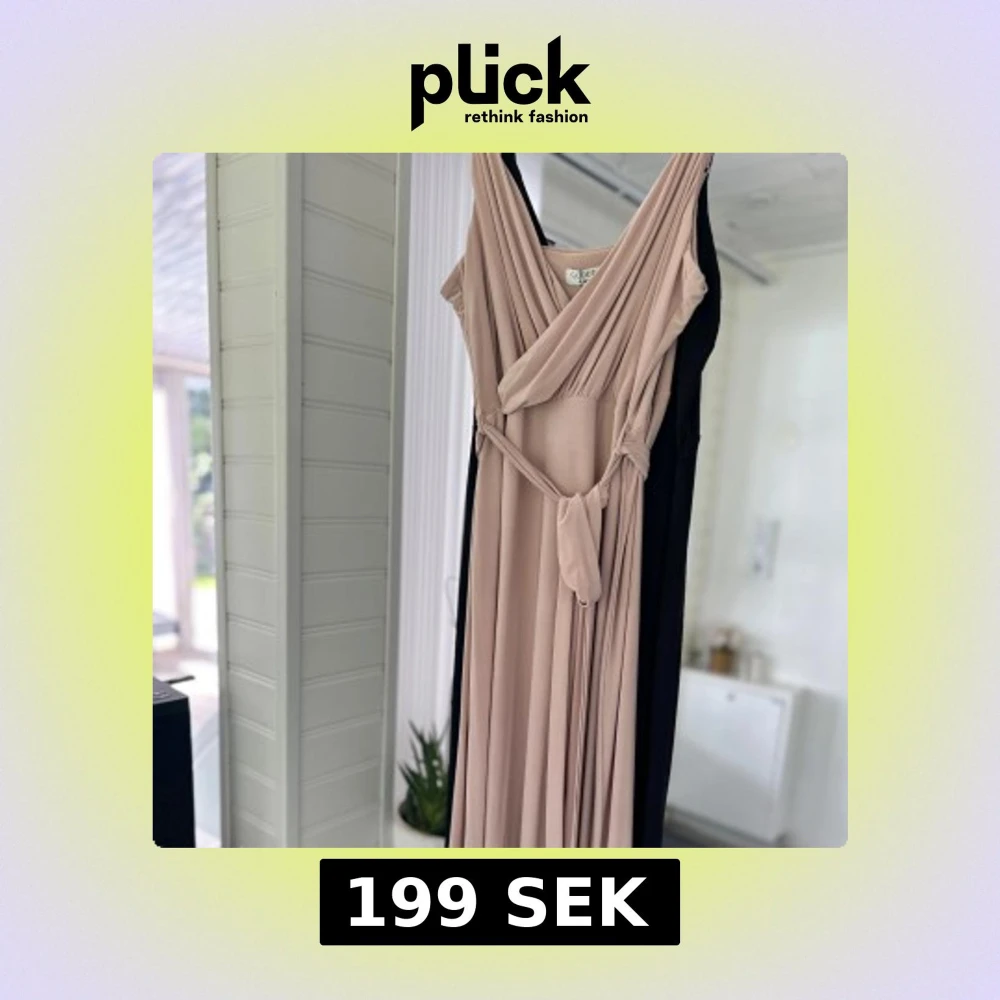 Säljer en elegant beige & svart omlottklänningar från Goddiva med v-ringning och knyt i midjan. Klänningen har smala axelband och ett fint fall i tyget, perfekt för speciella tillfällen.