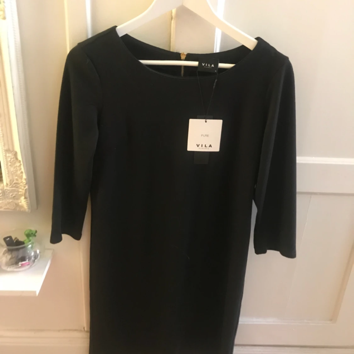Helt ny, lapp kvar. Svart basic klänning med halvlång arm & dragkedja i ryggen.