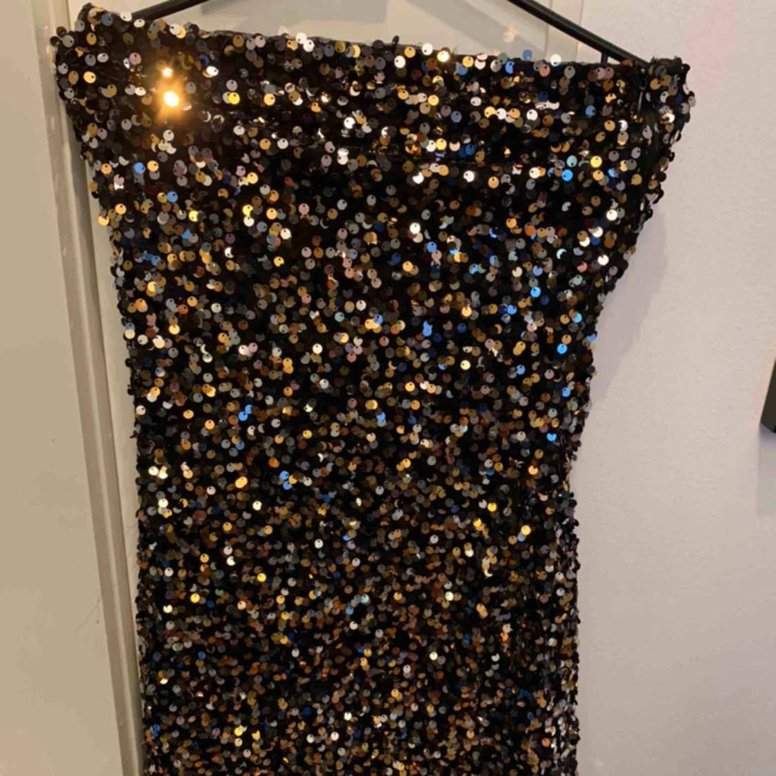 Tibklänning i guld, svart -och silverpaljetter, använd en gång.