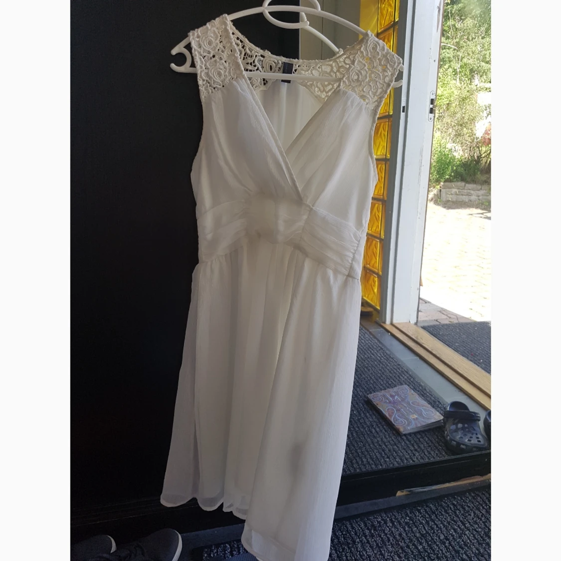 Vit sommarklänning! Använt 1 gång på en skolavslutning, kommer inte i den längre pga stor byst. Storlek S men funkar även som M.