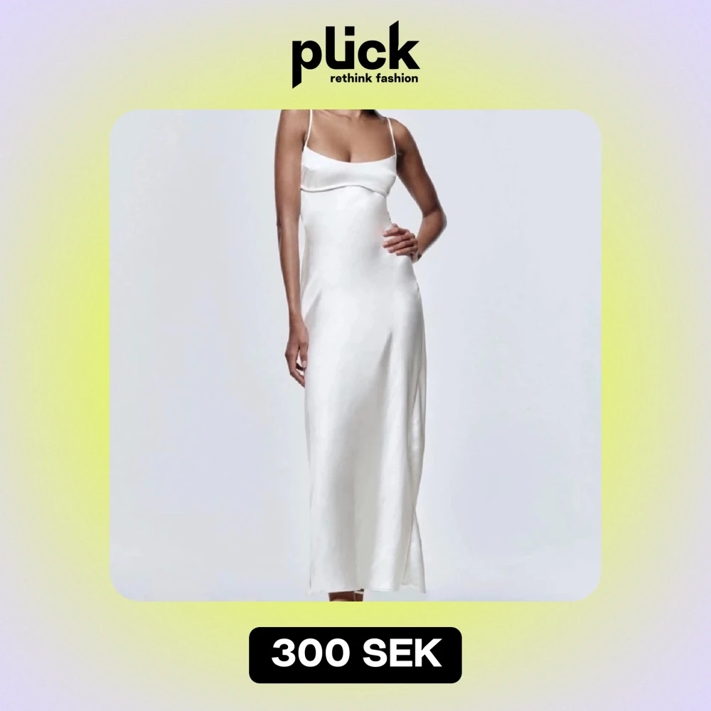 Säljer en elegant vit långklänning med smala axelband och öppen rygg. Klänningen har en slits baktill och är gjord i ett glansigt material som liknar satin. Perfekt för sommarfester eller en speciell kväll. Den är använd 2 gånger och har en figurnära passform. Kom privat för fler bilder eller eventuella frågor🤍