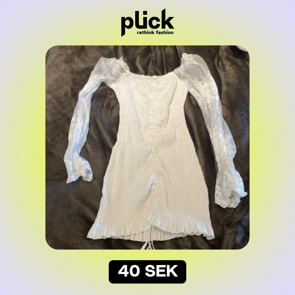 Jättefin vit klänning, använd fåtal ggr i nyskick! Köpt på shein, storlek 34 men passar även 36. Skönt material Säljes för 40kr