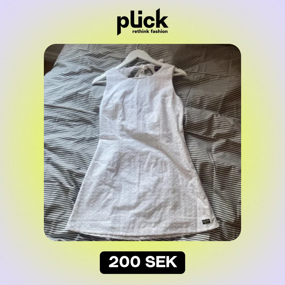 Supersöt vit klänning till student eller sommar. Aldrig använd, lapp kvar! Märket i hörnet kan man lätt sprätta bort, min tanke först. Stl 36 men passar 34-38 skurk jag säga