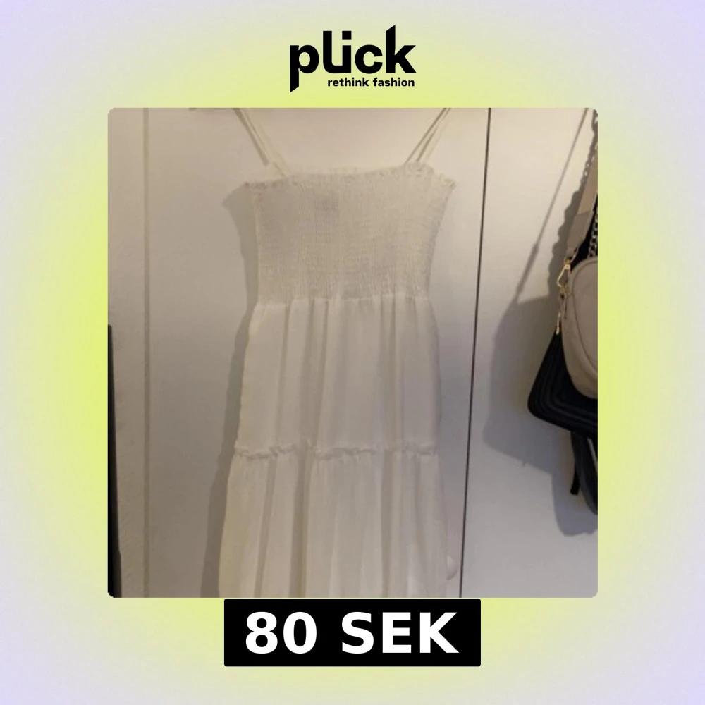 Superfin vit klänning med smock upptill och tunna axelband. Klänningen har en luftig och flowy passform med volangdetaljer och är perfekt för varma dagar. Enkel och stilren design som känns riktigt fräsch och trendig.