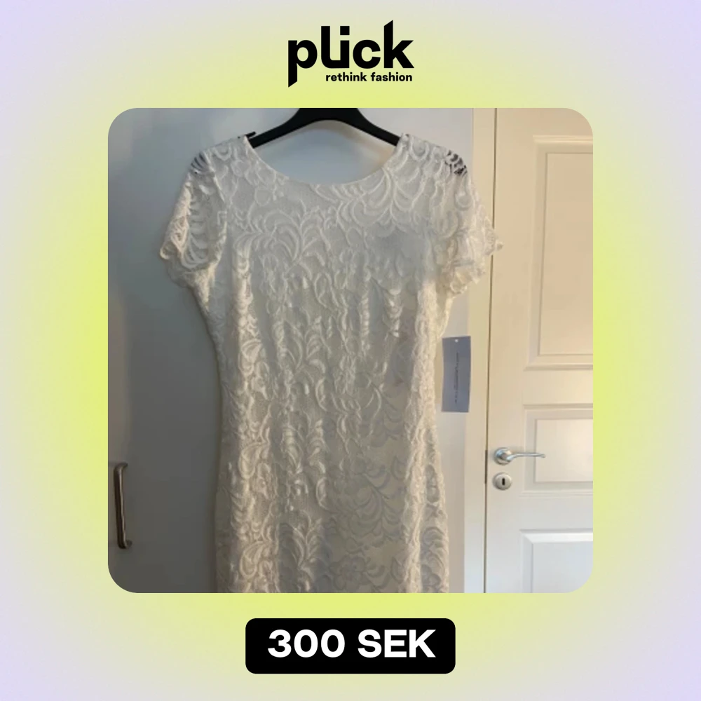 Säljer en vit kort spetsklänning från bubbelroom och aldrig använd!