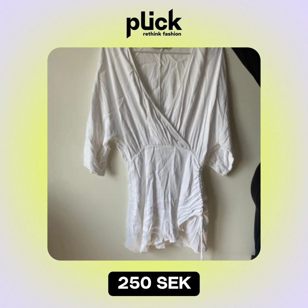 Säljer en superfin vit omlottklänning från Zara. Den har trekvartsärmar och en snygg rynkad detalj på sidan. Perfekt för sommaren eller en festlig kväll! Klänningen är i ett lätt och bekvämt material.