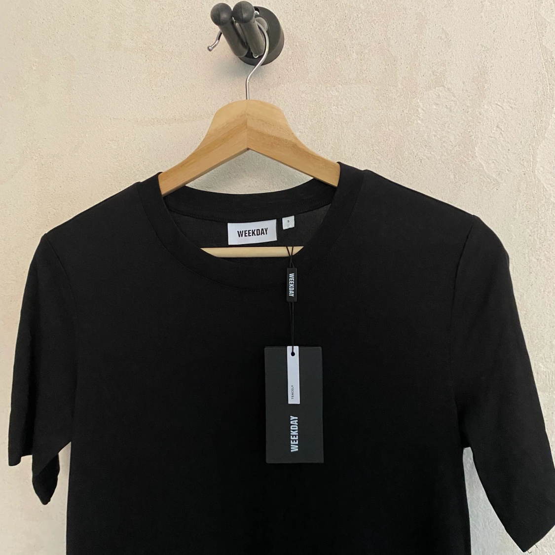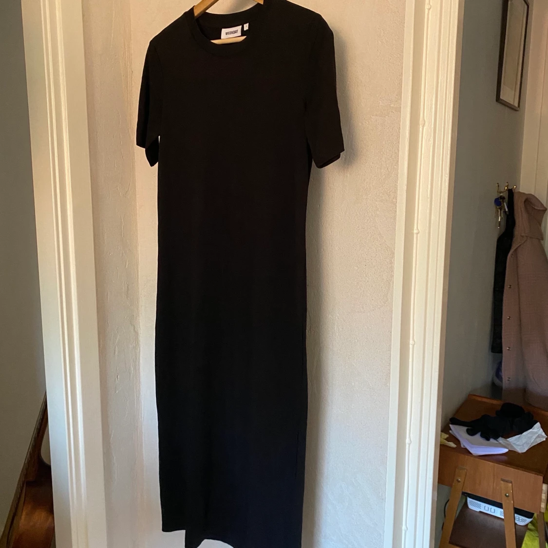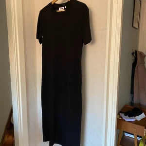 Svart långklänning från Weekday med korta armar. Oanvänd, prislapp kvar. Nypris 300kr. Köpare betalar frakt
