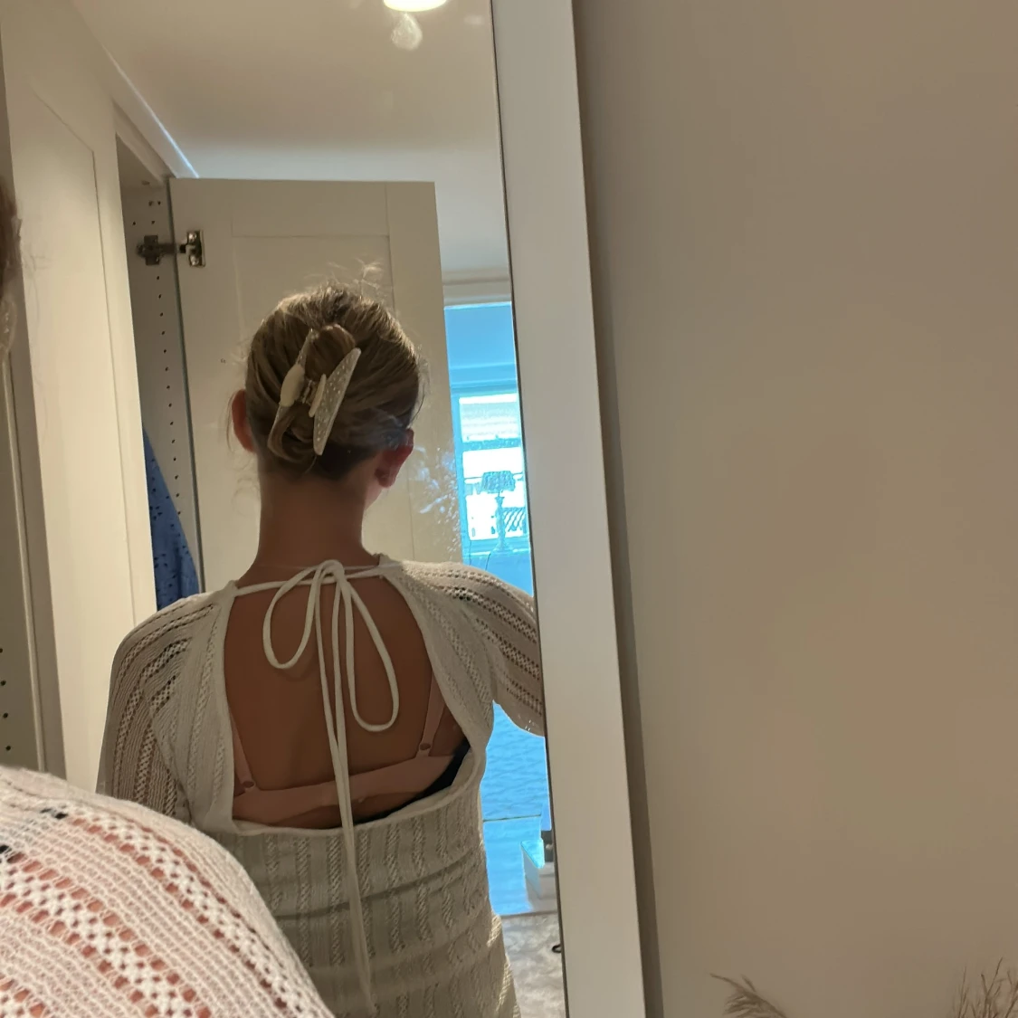 Vit jättefin beach, cover up med öppen rygg. Klänningar är i spets men är en underklänning i så det inte ska bli så genomskinlig. säljer eftersom jag inte har så stor användning av den.