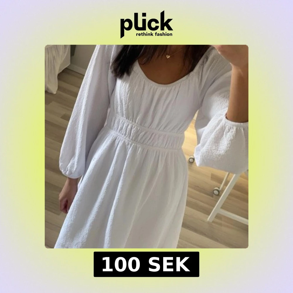 Superfin vit klänning från Cubus med långa ärmar och markerad midja. Bara använd 1 gång! Är i storlek 158 men jag skulle säga xs💞💞💞