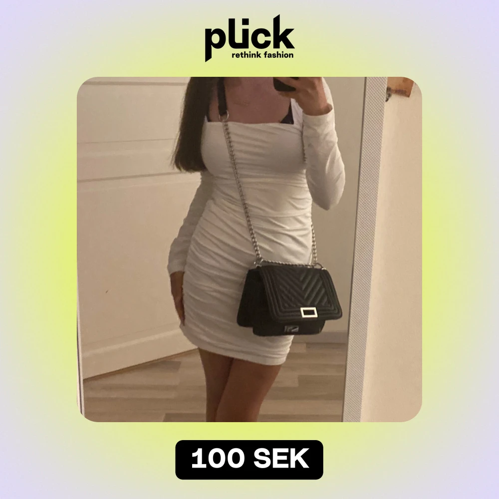 Säljer en superfin vit kortklänning med långärmad design och en snygg öppen rygg. Perfekt för fest eller en somrig dag! Klänningen har en tight passform som framhäver.