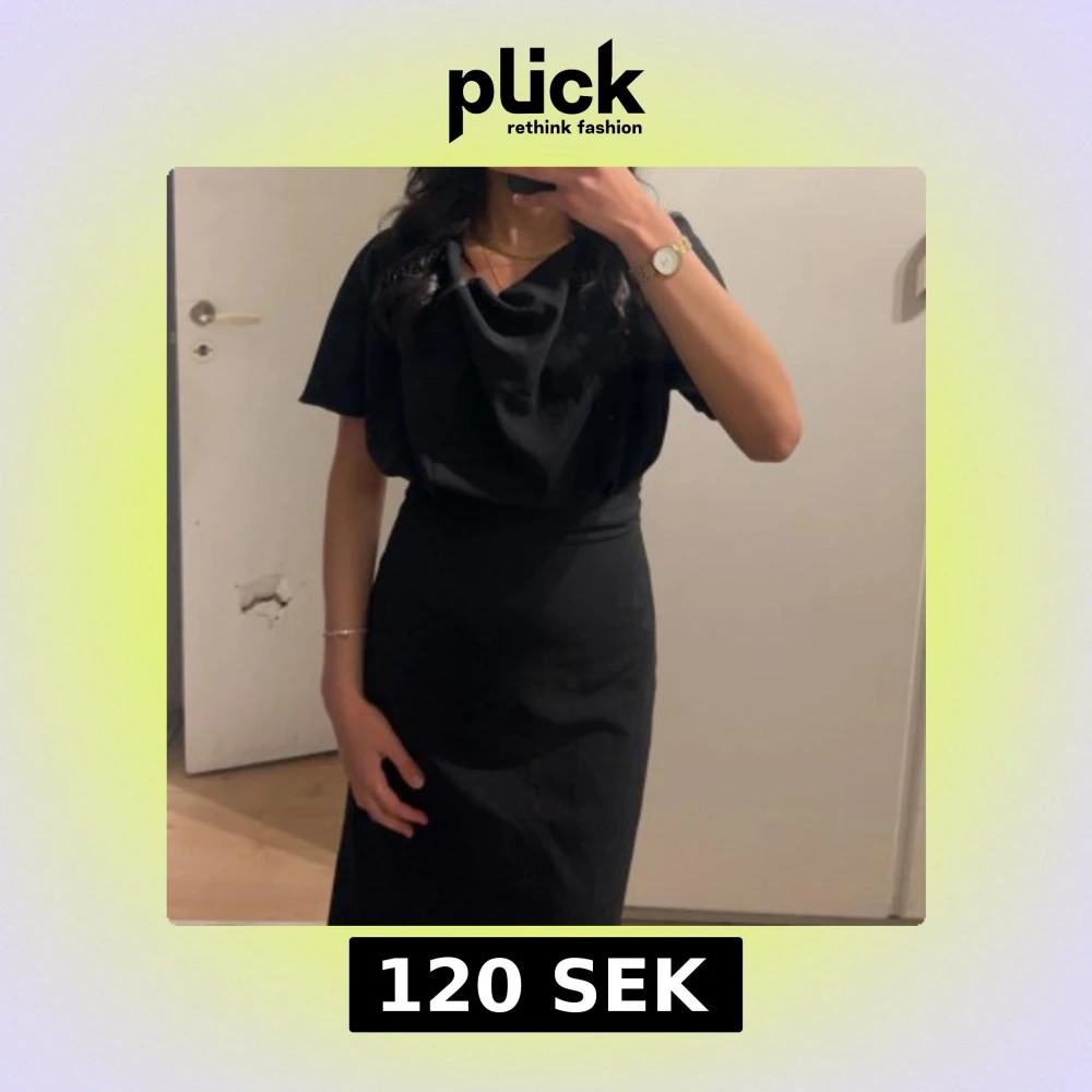 Snygg svart långklänning med draperad halsringning och korta ärmar. Klänningen har en elegant och stilren look, perfekt för dig som gillar minimalistisk stil. Den höga midjan ger en smickrande siluett.