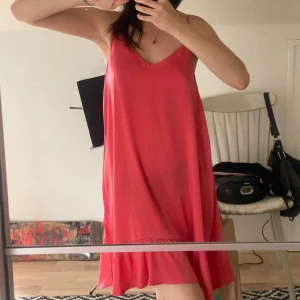Klänning i orange/rosa färg i ”silkes”material. Aldrig använd!