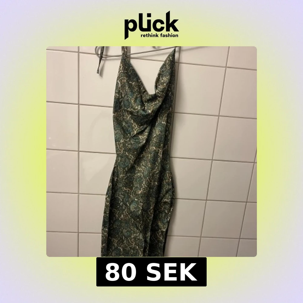 Säljer en snygg grön klänning med blommigt mönster och omlott-detalj.🧚🏽🧚🏽🧚🏽🧚🏽