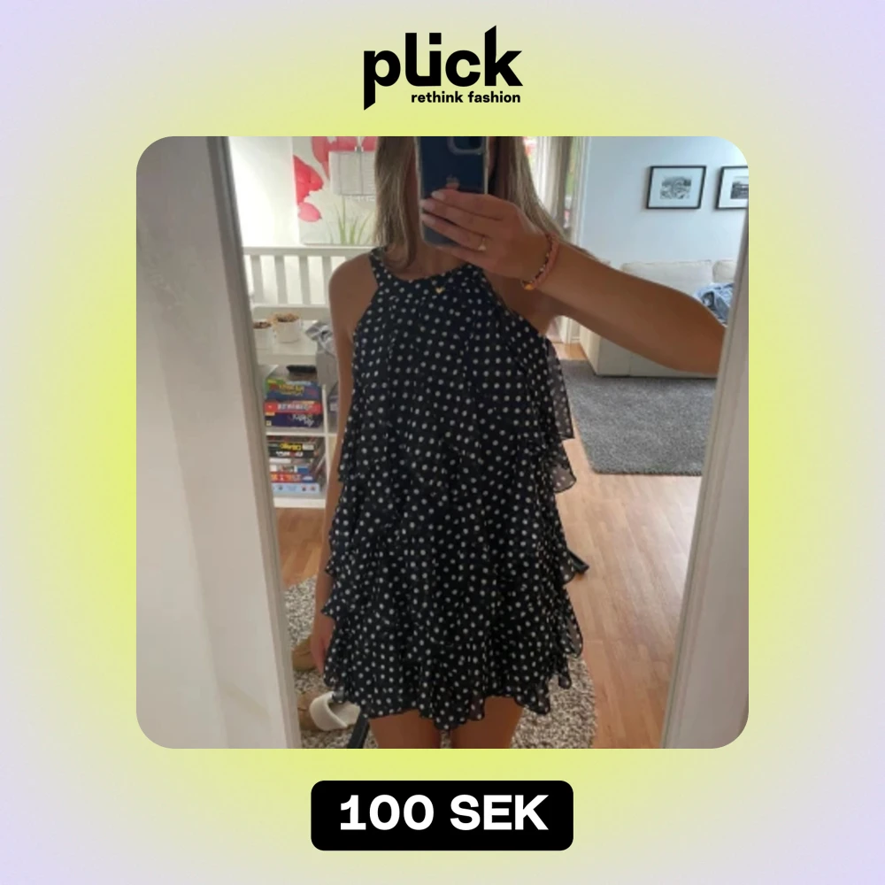 Sååå fin klänning som börjar bli för liten för mig. Har volanger åt lodrätt håll, vilket är sååå fint! Står i barnstorlek men skulle säga att den är perfekt för xs.