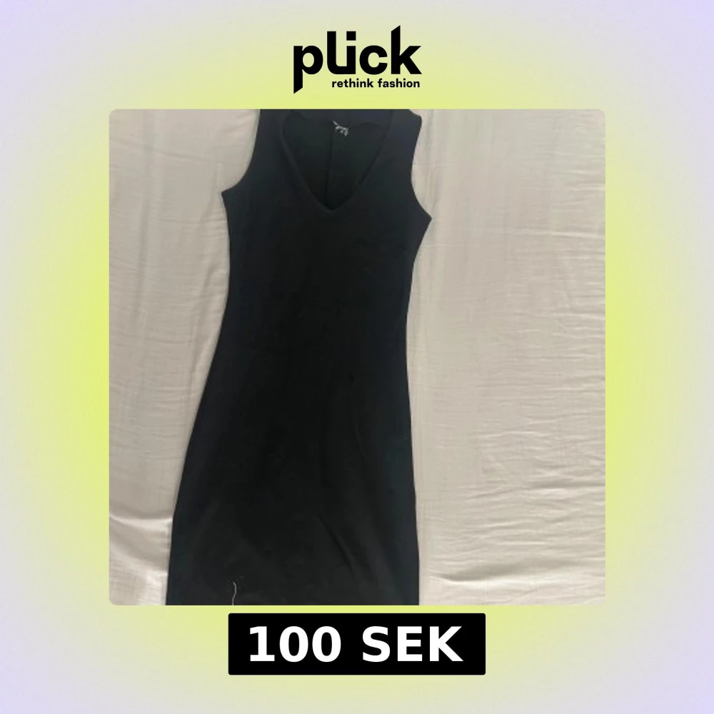 Snygg svart, tajt ärmlös klänning med v-ringning. Säljes då den är för liten, tyvärr är lappen bortklippt men är troligen på H&M eller liknande.