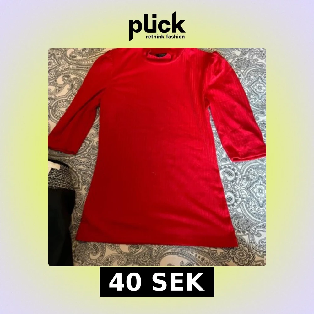 En snygg röd kortklänning med ribbad struktur och trekvartsärm. Klänningen har en enkel, rak passform och rund halsringning. Perfekt för dig som vill sticka ut med färg och stil.