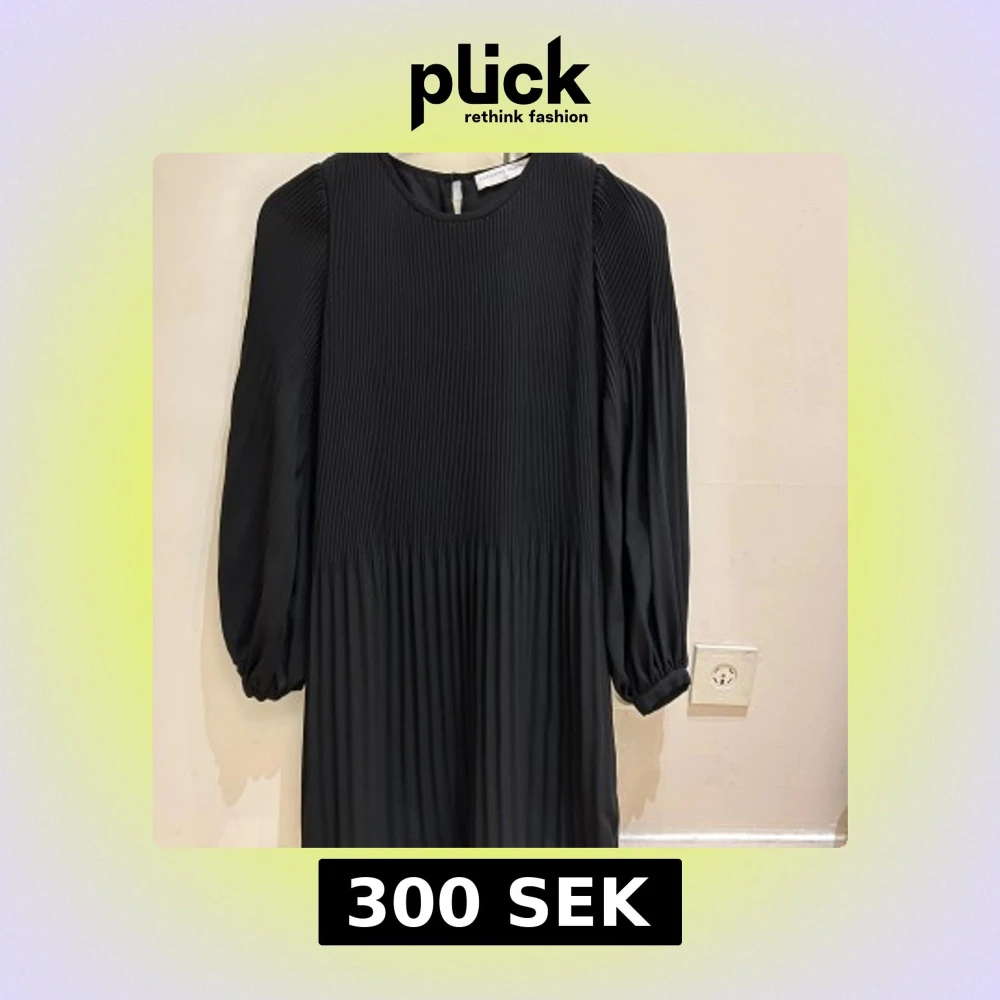 Supersnygg svart plisserad klänning från Cathrine Hammel i storlek XS. Klänningen har rund halsringning, långa puffärmar och ett elegant fall. Materialet är mjukt och har en lyxig känsla, perfekt för dig som gillar stilrena och moderna plagg.
