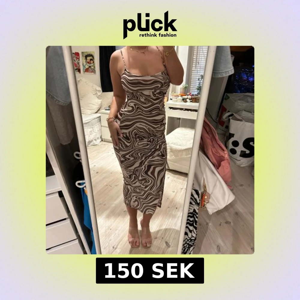 Så snygg mönstrad klänning med slits man själv kan ändra hur hög!! Perfekta långklänningen med smala axelband ❤️endast använd 1 gång