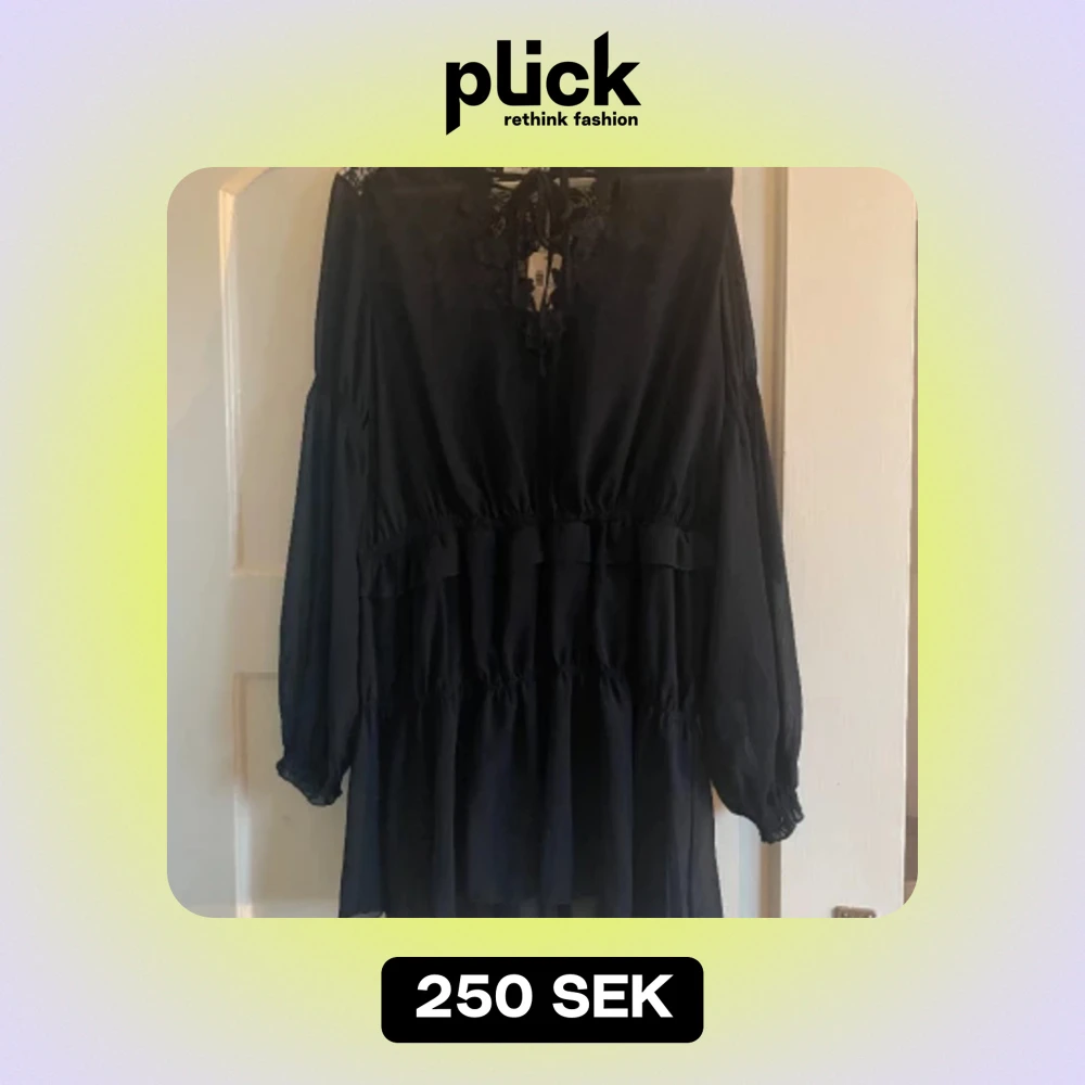 Svart spetsdetaljerad kortklänning - Snygg svart kortklänning med spetsdetaljer vid halsen och nederkanten. Den är från Noughts and kisses och jag köpte den för 1600kr inklusive frakt och tull! Den är oanvänd och har alla lappar kvar.