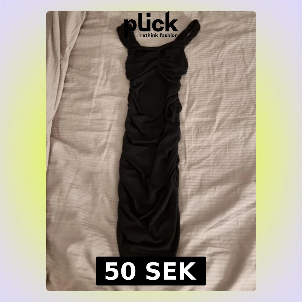 Säljer en svart långklänning den är medel lång det kan variera på lämgd med breda axelband och snygga rynkade detaljer längs hela klänningen. Klänningen har en figurnära passform och är tillverkad i ett mjukt, stretchigt material som känns bekvämt mot huden.