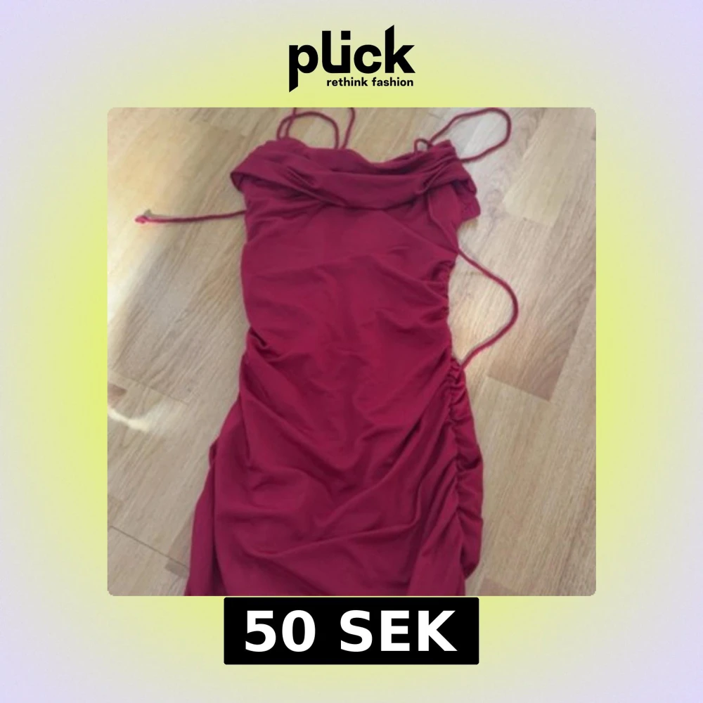 Snygg röd kort klänning med smala axelband och rynkade sidor. Klänningen har en draperad urringning och figurnära passform, perfekt för dig som vill sticka ut. Materialet känns mjukt och följsamt mot kroppen.