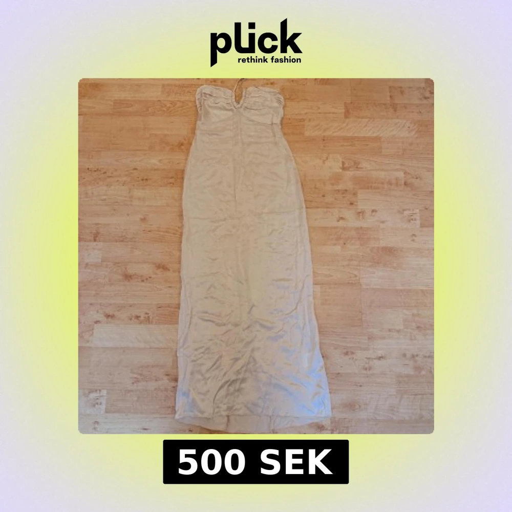 Supersnygg långklänning från Àvora i krämfärgad ton. Klänningen har axelbandslös design med snygg rynkning upptill och knyt i nacken. Materialet känns mjukt och har ett lätt satinliknande skimmer. Perfekt för dig som vill ha en elegant och stilren look.