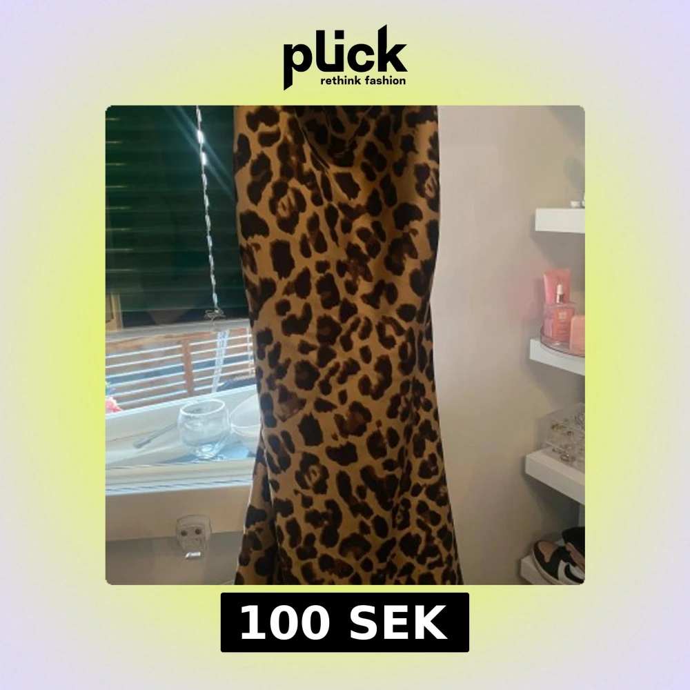 Säljer en snygg långklänning med leopardmönster i bruna och svarta toner. Klänningen har en slät satinfinish som ger ett lyxigt intryck och ett elegant fall. Perfekt för dig som vill sticka ut med en trendig look.